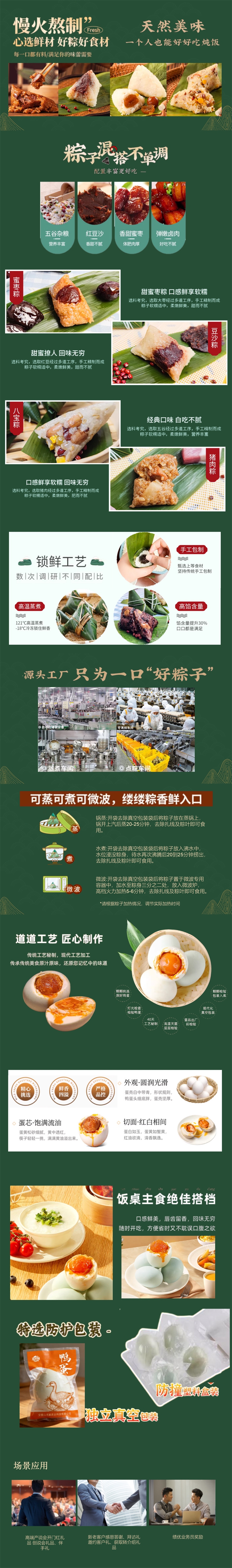 配置清单:空彩袋八宝粽100g*2 真空彩袋豆沙粽100g*2 真空彩袋蜜枣粽100g*2 咸鸭蛋55g*4