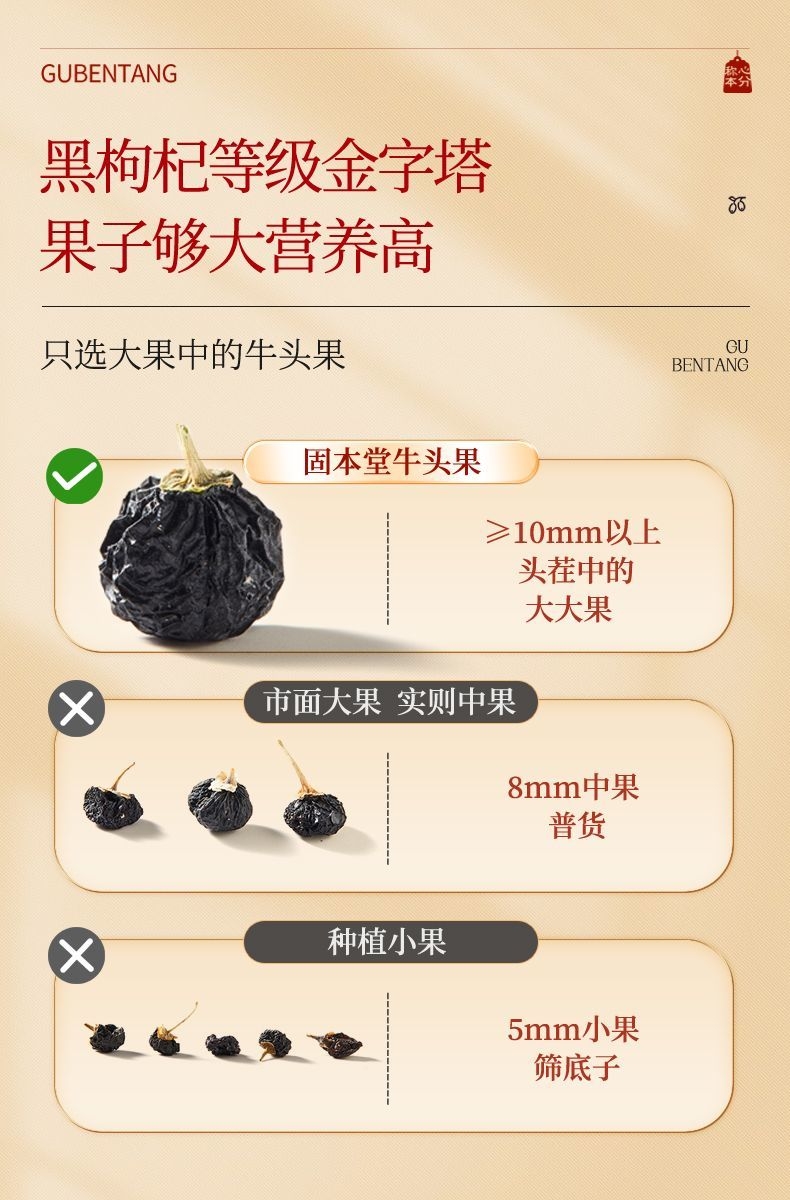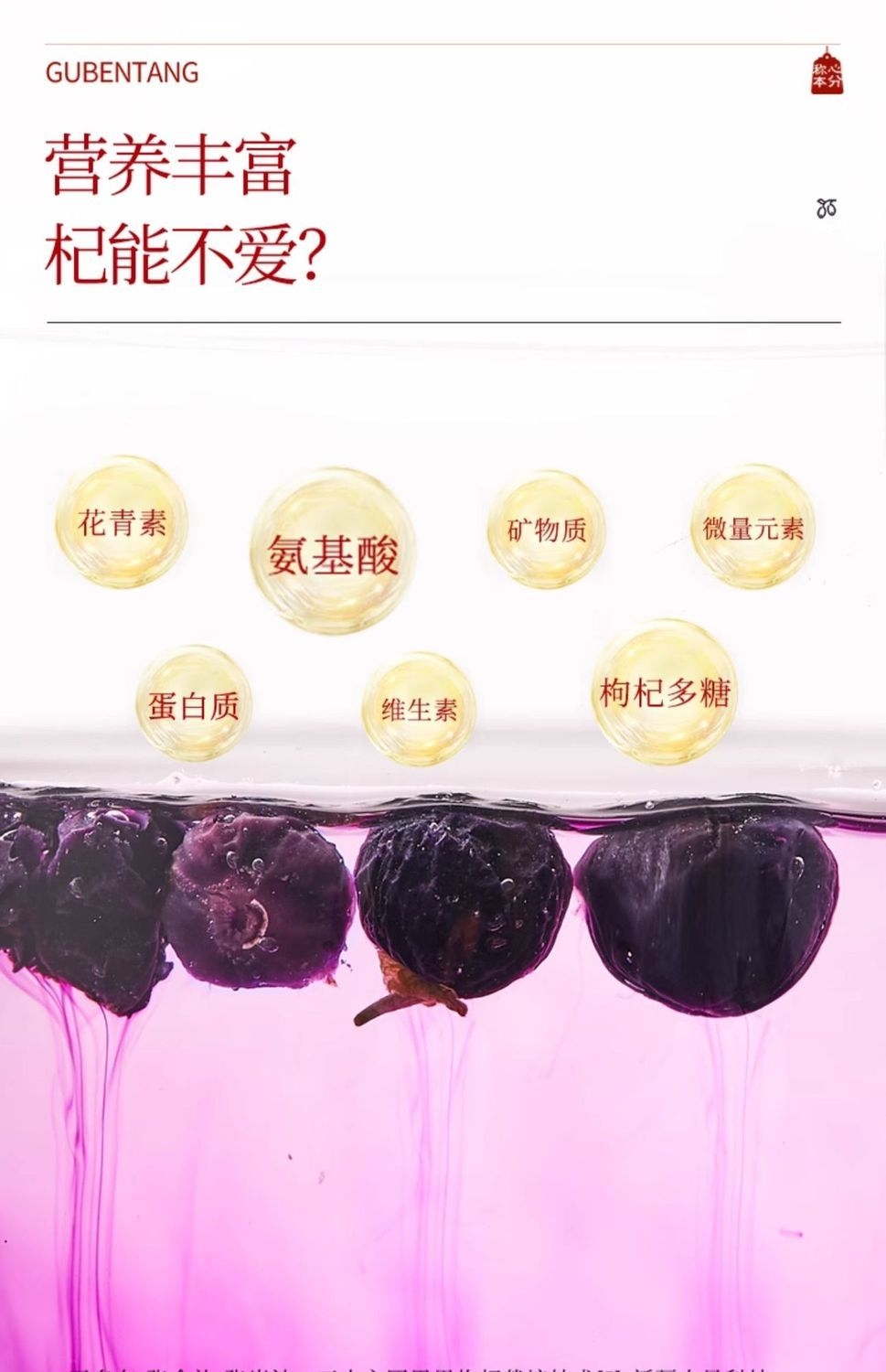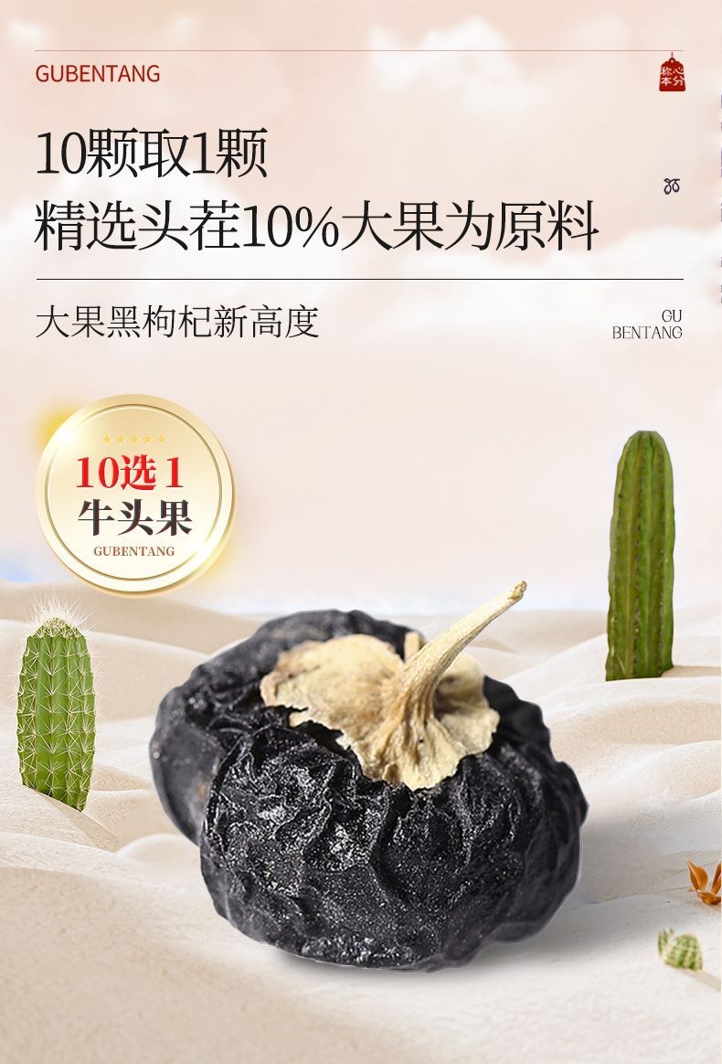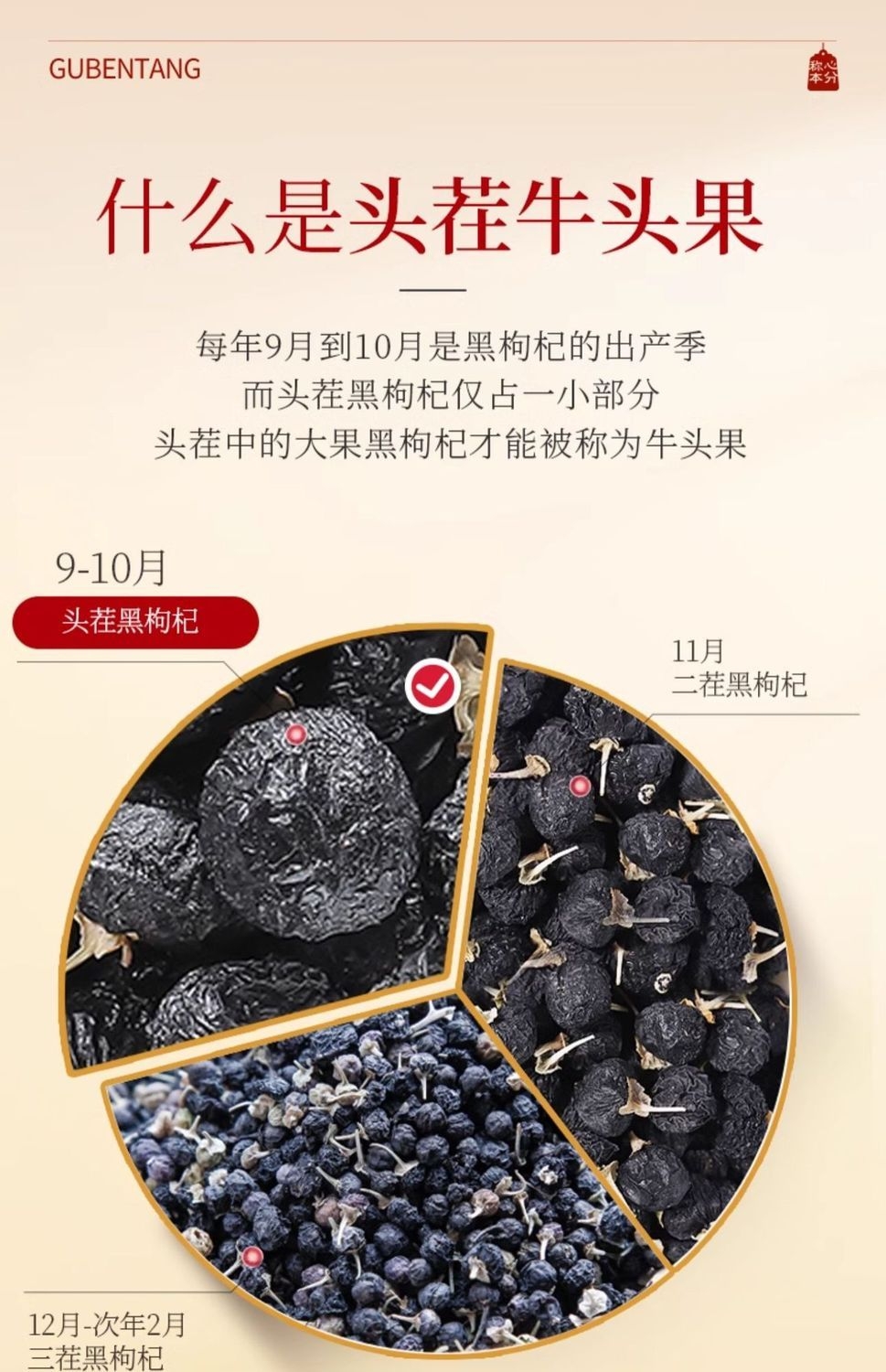 黑枸杞中含有较为丰富的花青素;头茬牛头果 珍品来自青海;10颗取1颗 精选头茬10%大果为原料