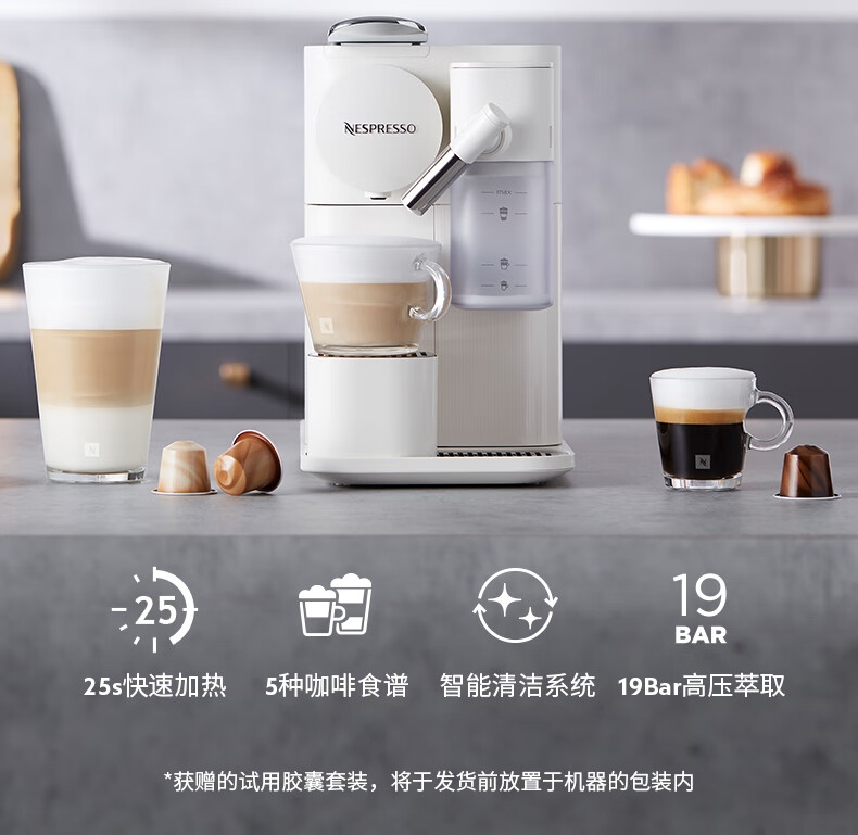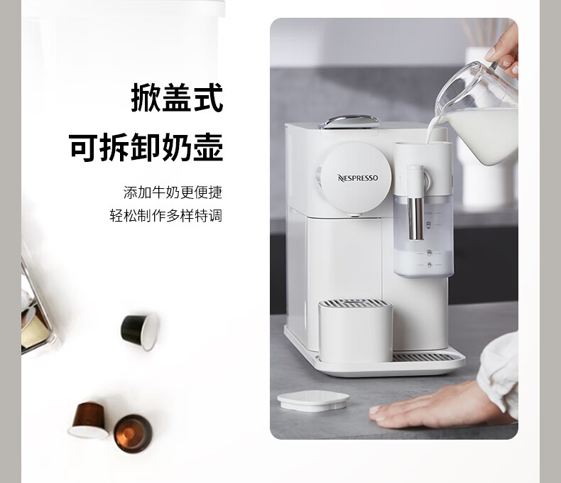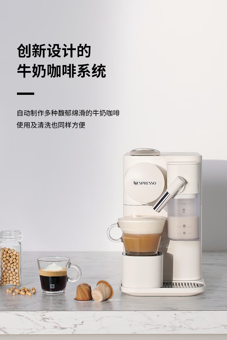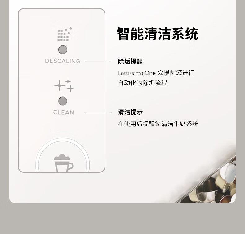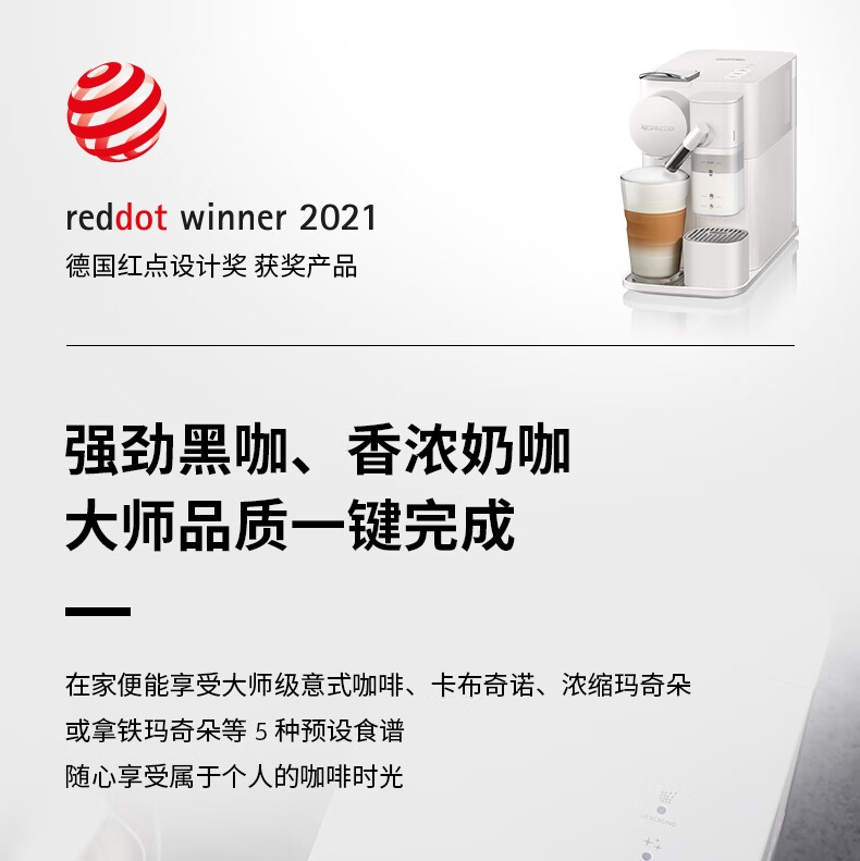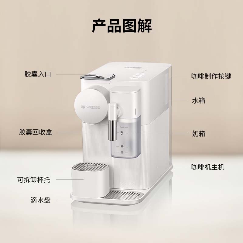 大容量奶泡一体高压萃取;强劲黑咖、香浓奶咖,一键搞定;功能强大机身小巧