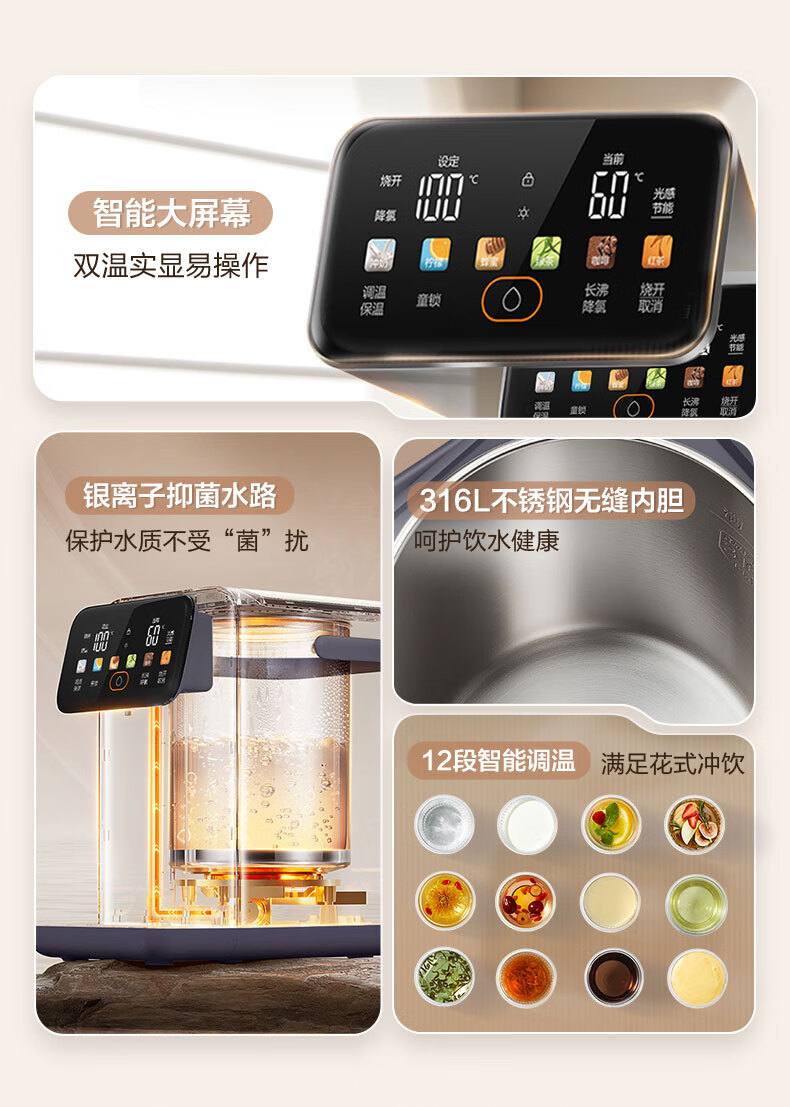 15L大容量;316不锈钢内胆;8英寸大屏幕触摸按键