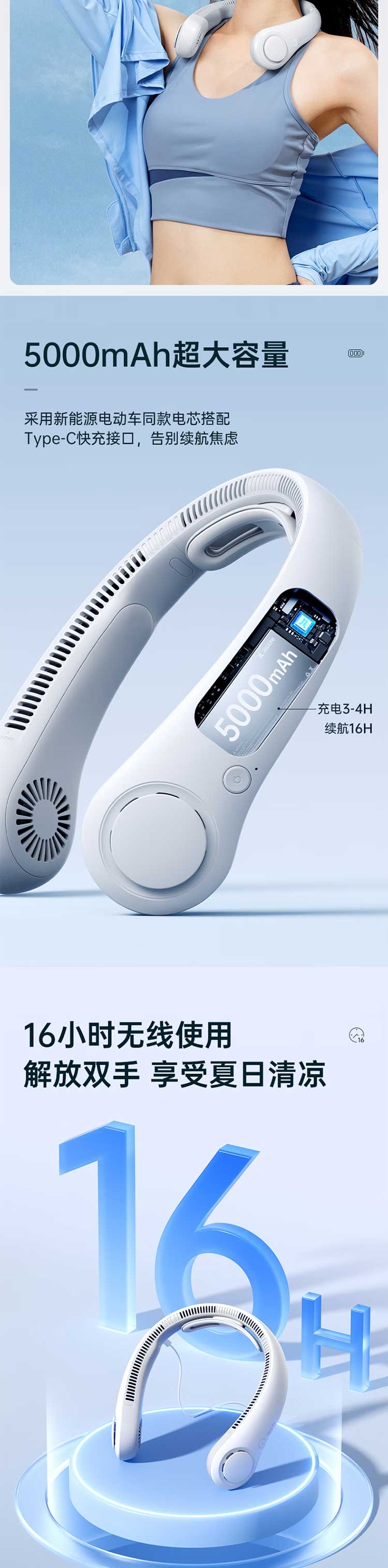 轻便携带;5000mAh大容量;模拟自然风