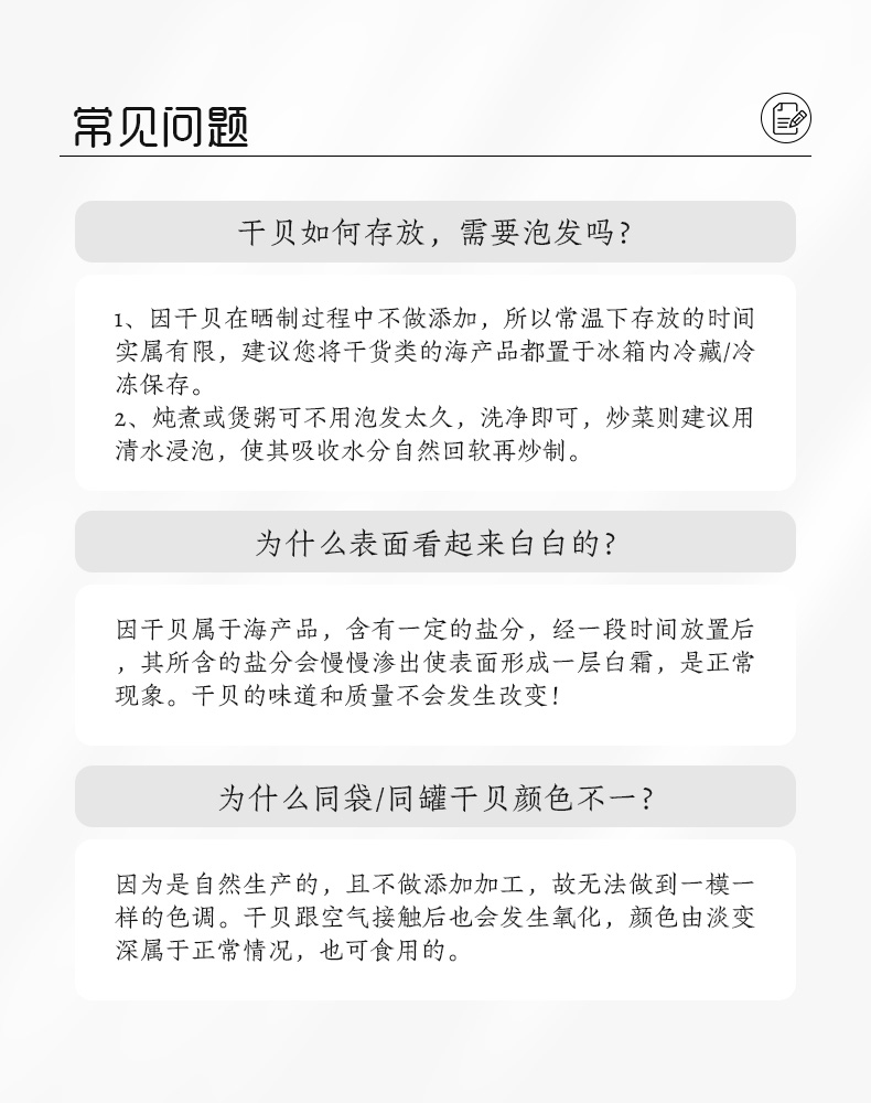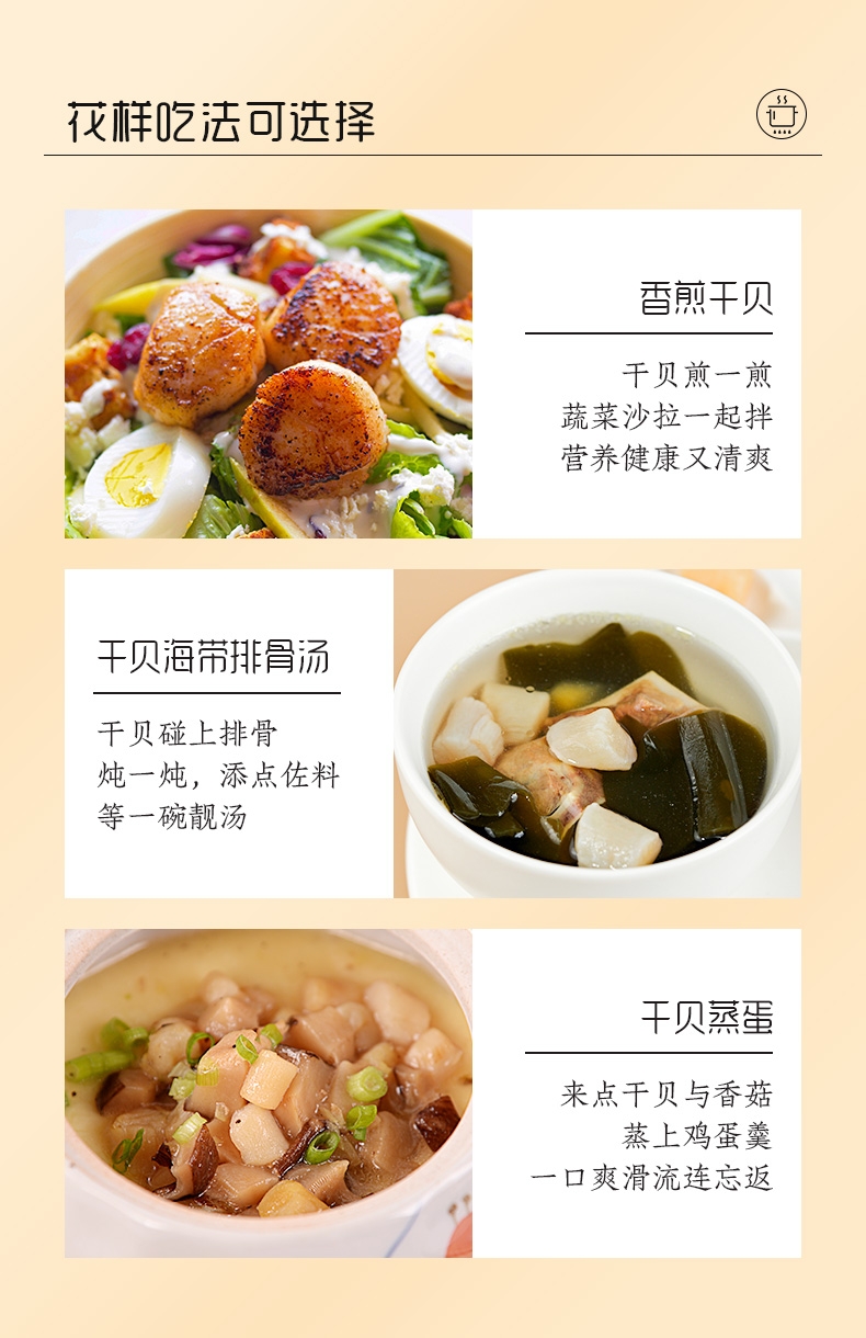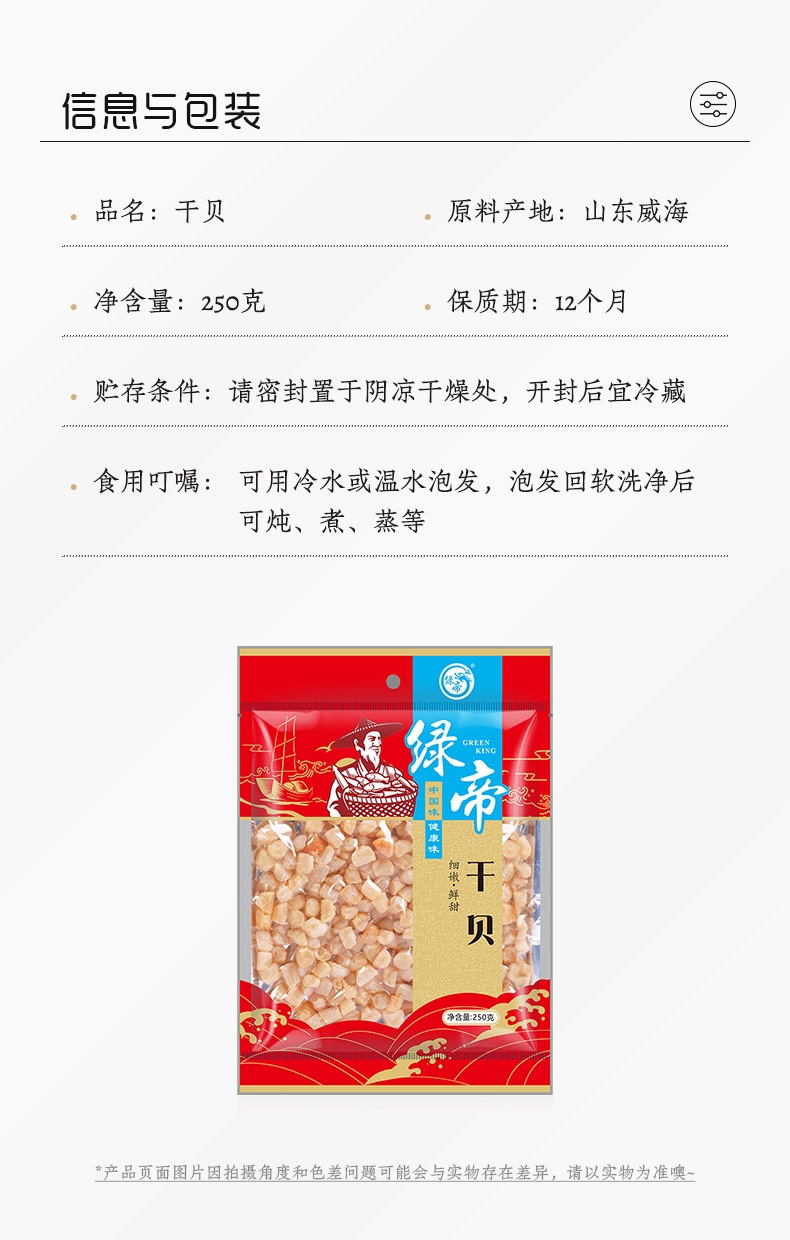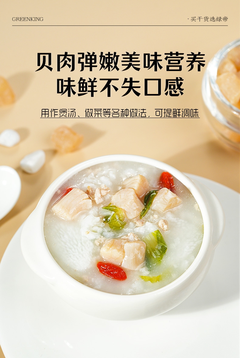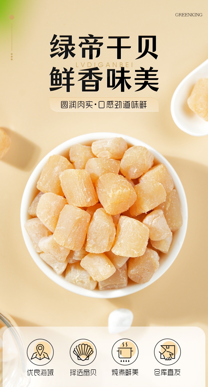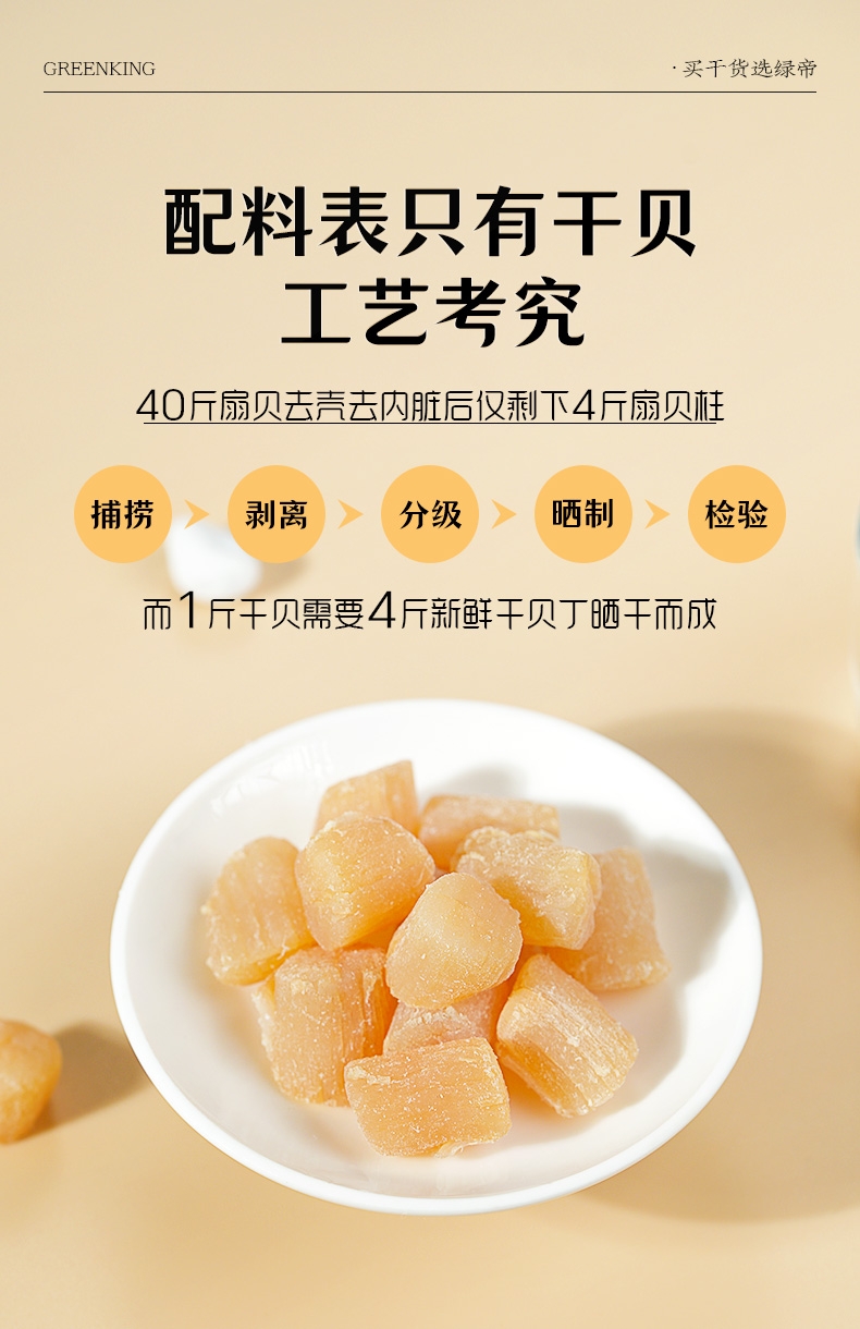 足干淡晒,肉质紧实;颗颗精选,无碎无杂;海味浓郁,鲜香纯正