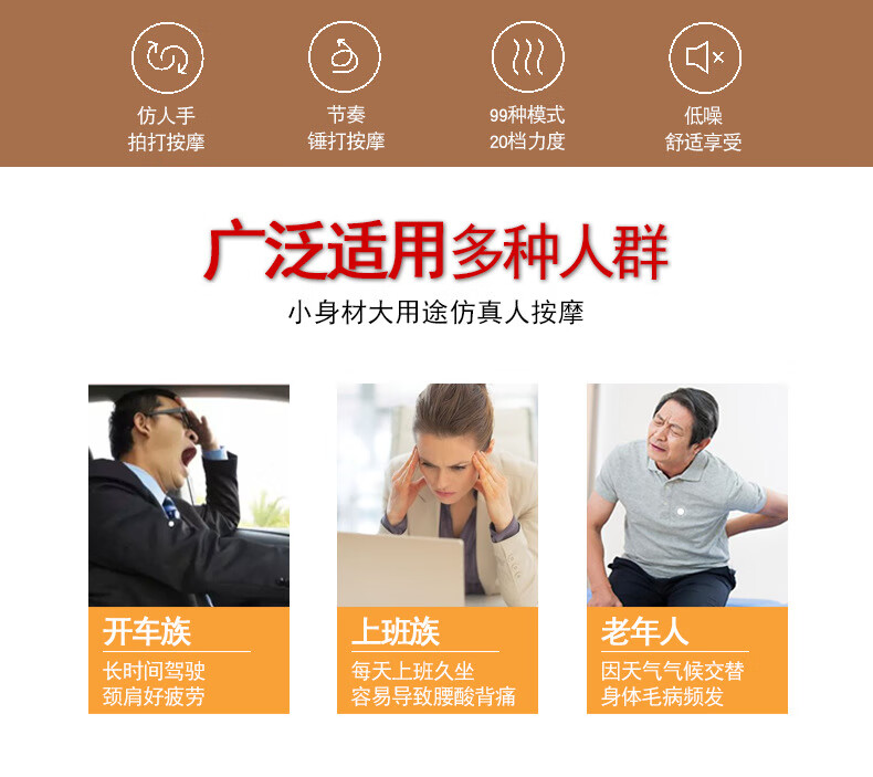 高效缓解肌肉疲劳;多样化按摩模式与力度调节;多部位适用;便捷操作与便携性;安全与舒适设计