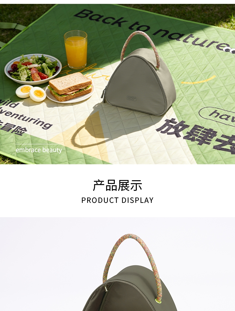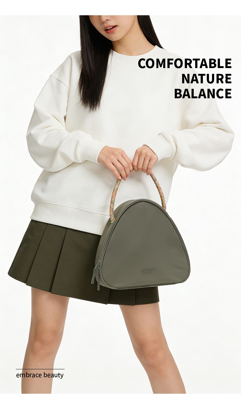 山丘粽形,趣意双关,圆润三角造型;如山峦起伏,又如粽角棱角,简约时尚不落俗套;百搭各种场合,五彩绳提手,匠心独运
