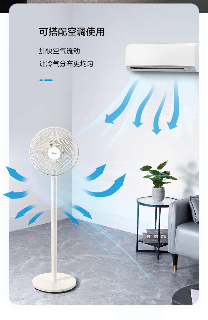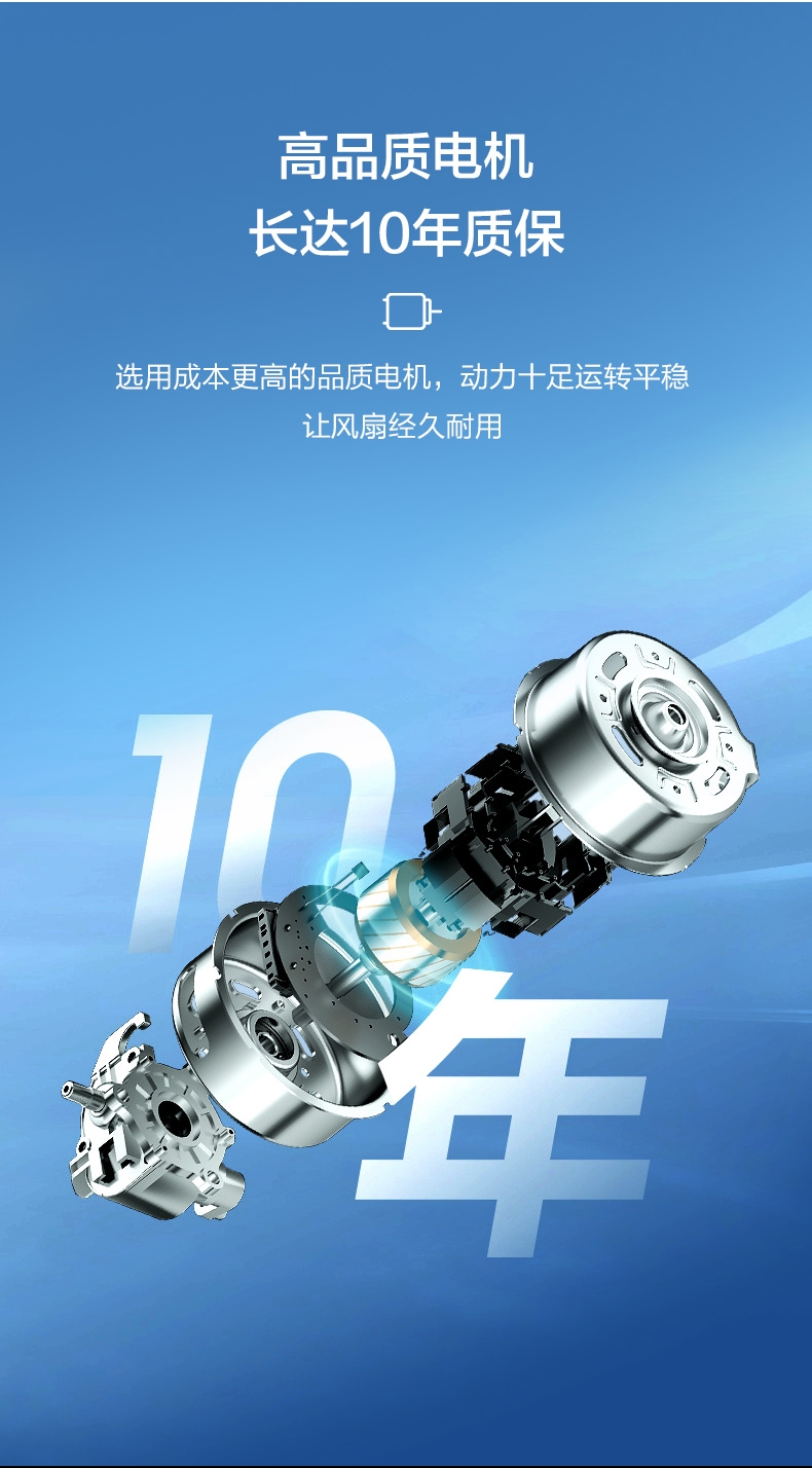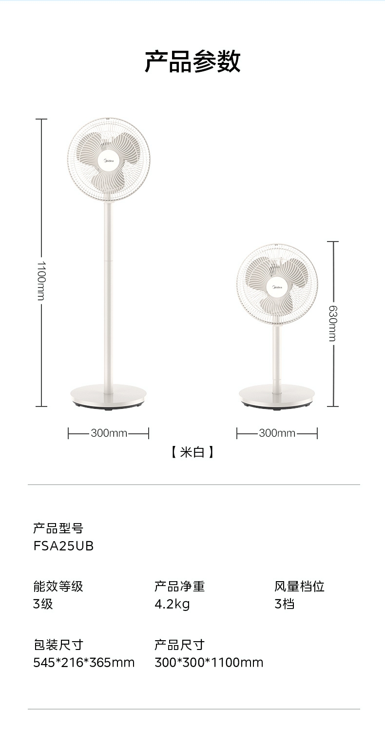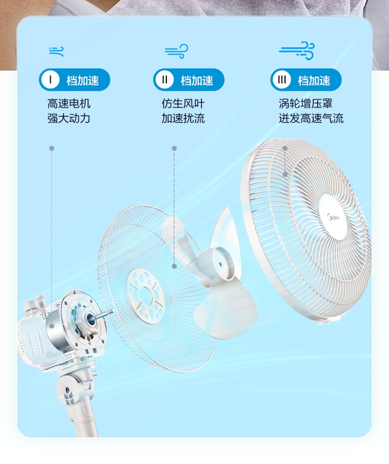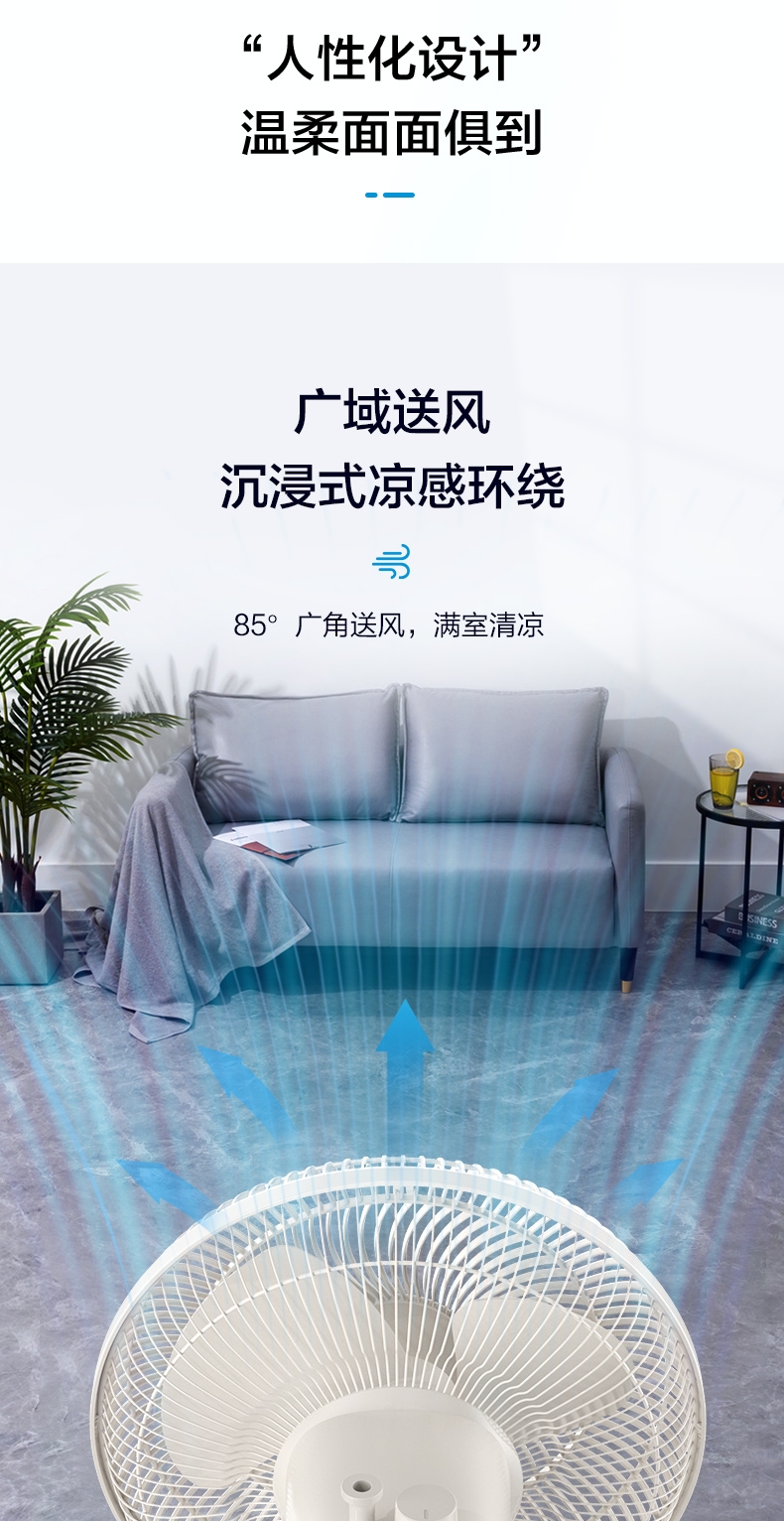立柱可自由拼接,台地两用;;电机10年质保,品质可靠;;三片风叶,三档风速;