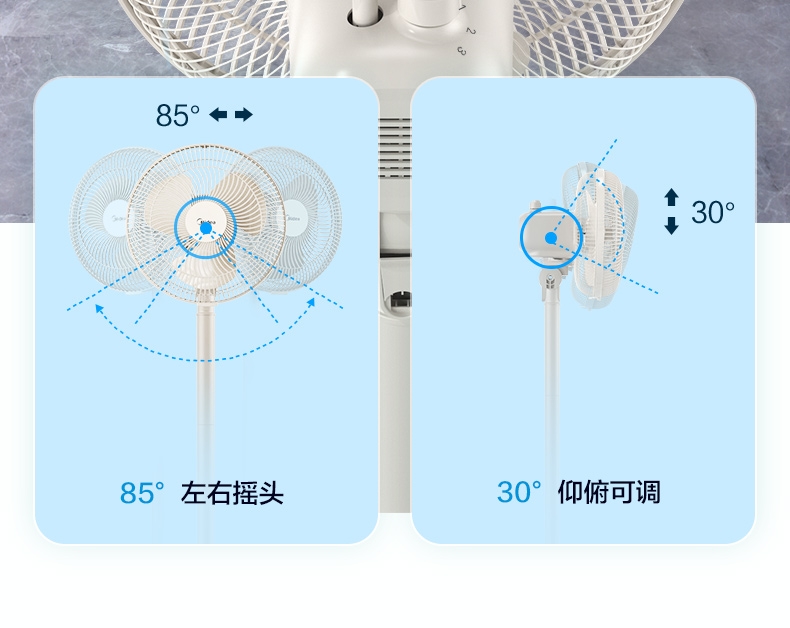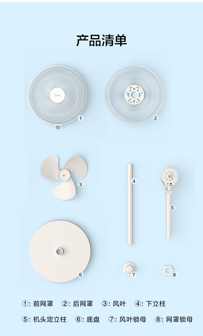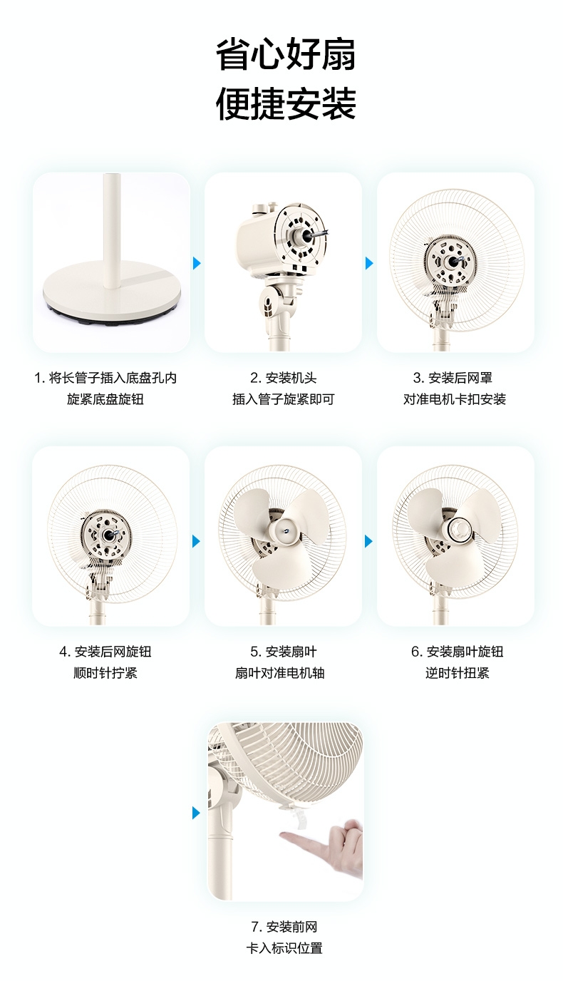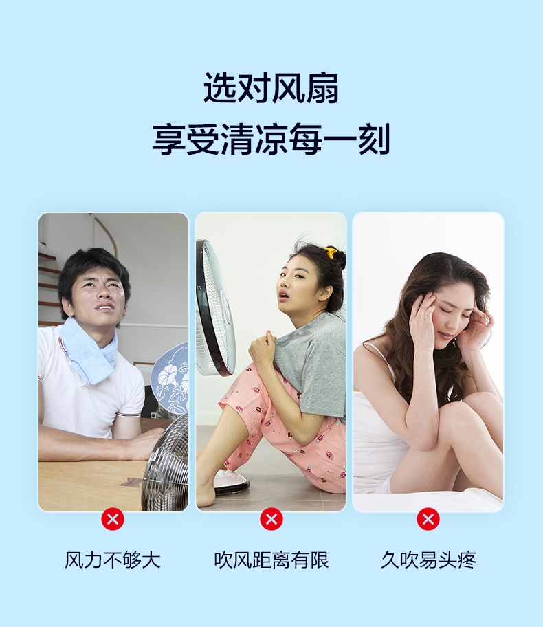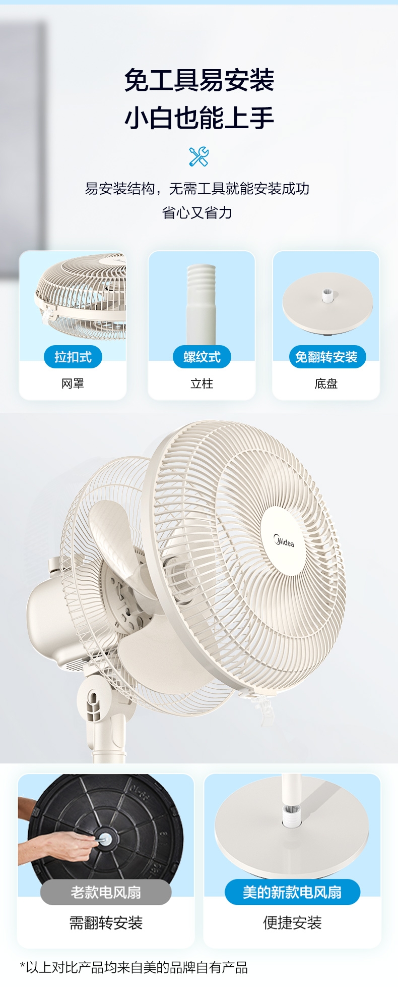 立柱可自由拼接,台地两用;;电机10年质保,品质可靠;;三片风叶,三档风速;