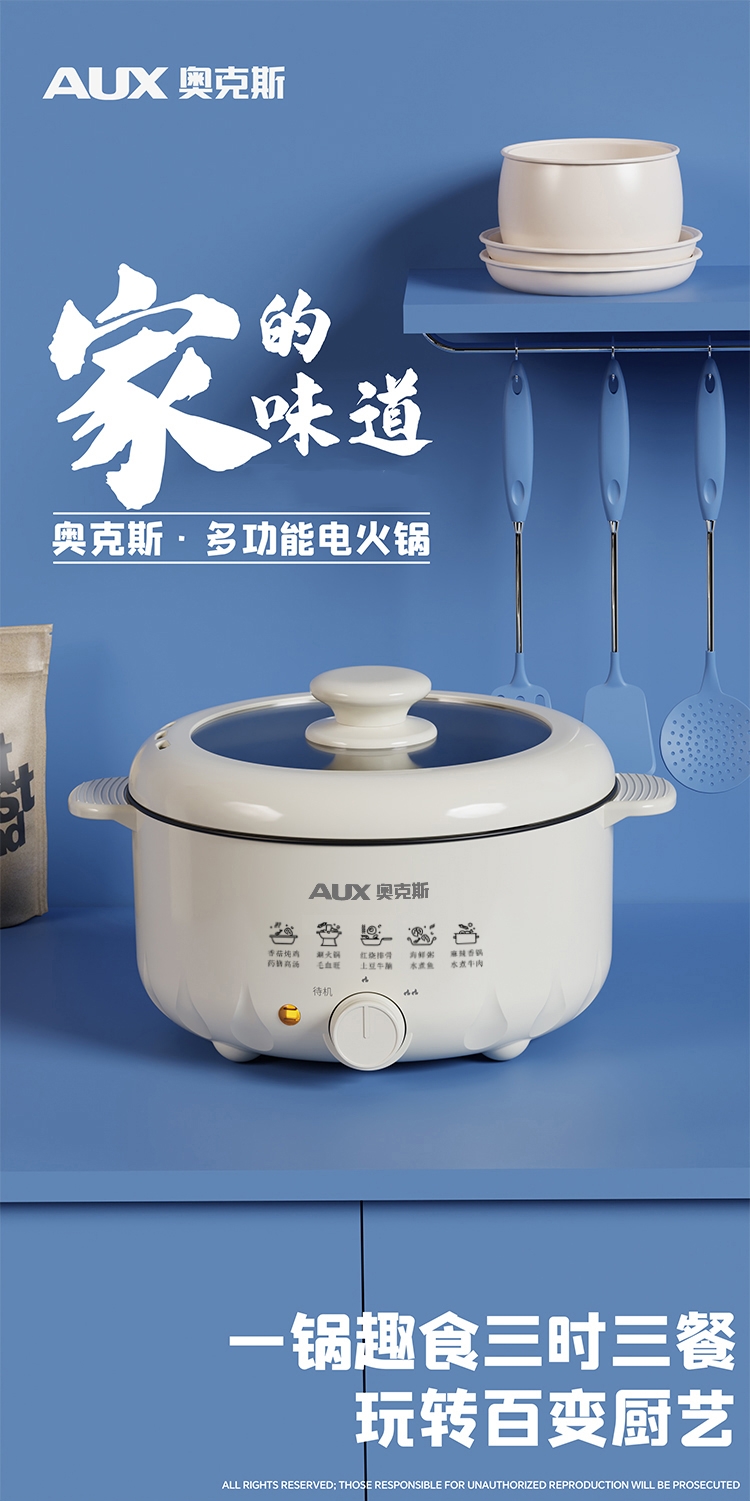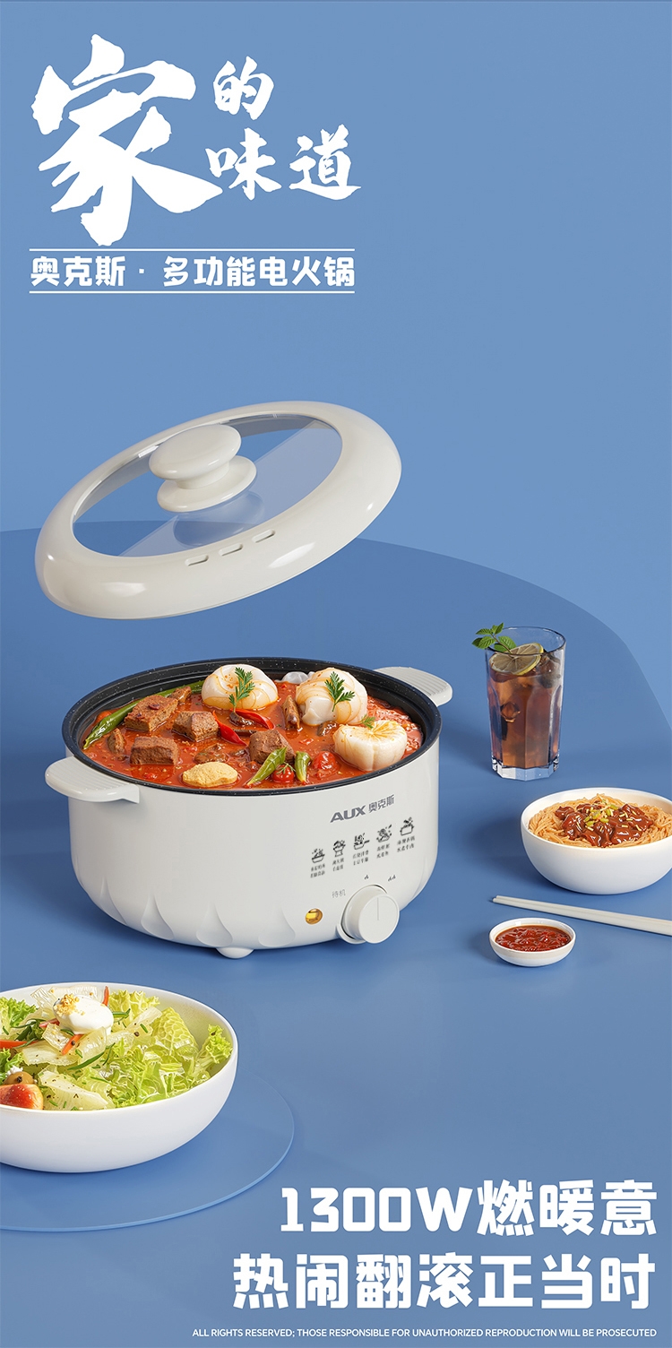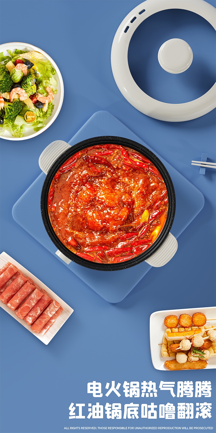 电热火锅功能:炒,炸,煎,煮,炖,焖,火锅,煮面,煲汤
