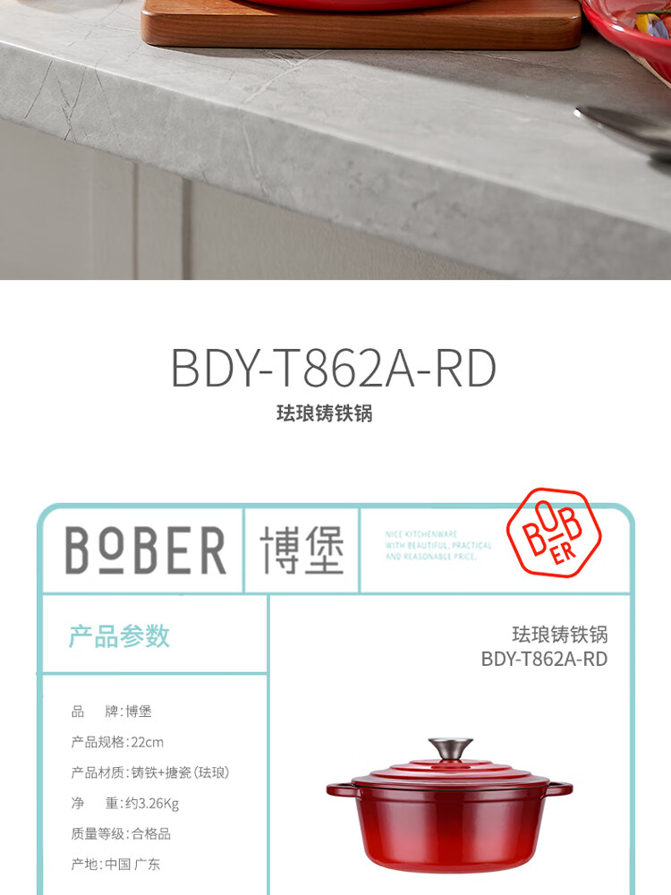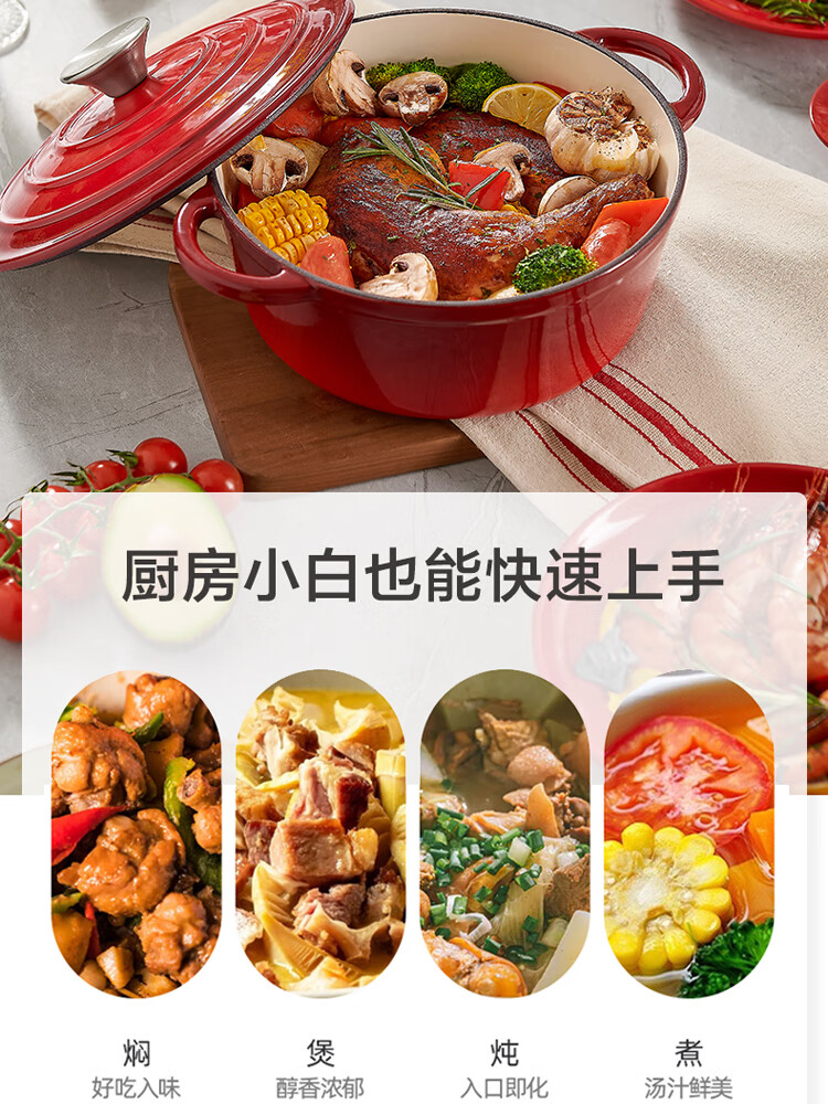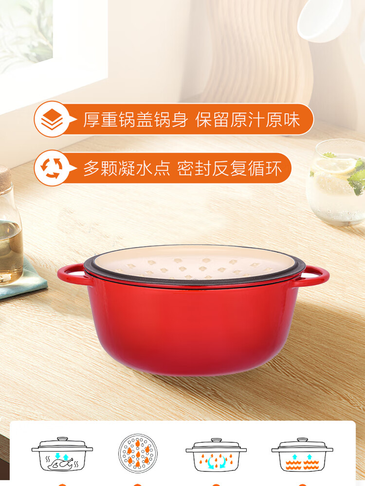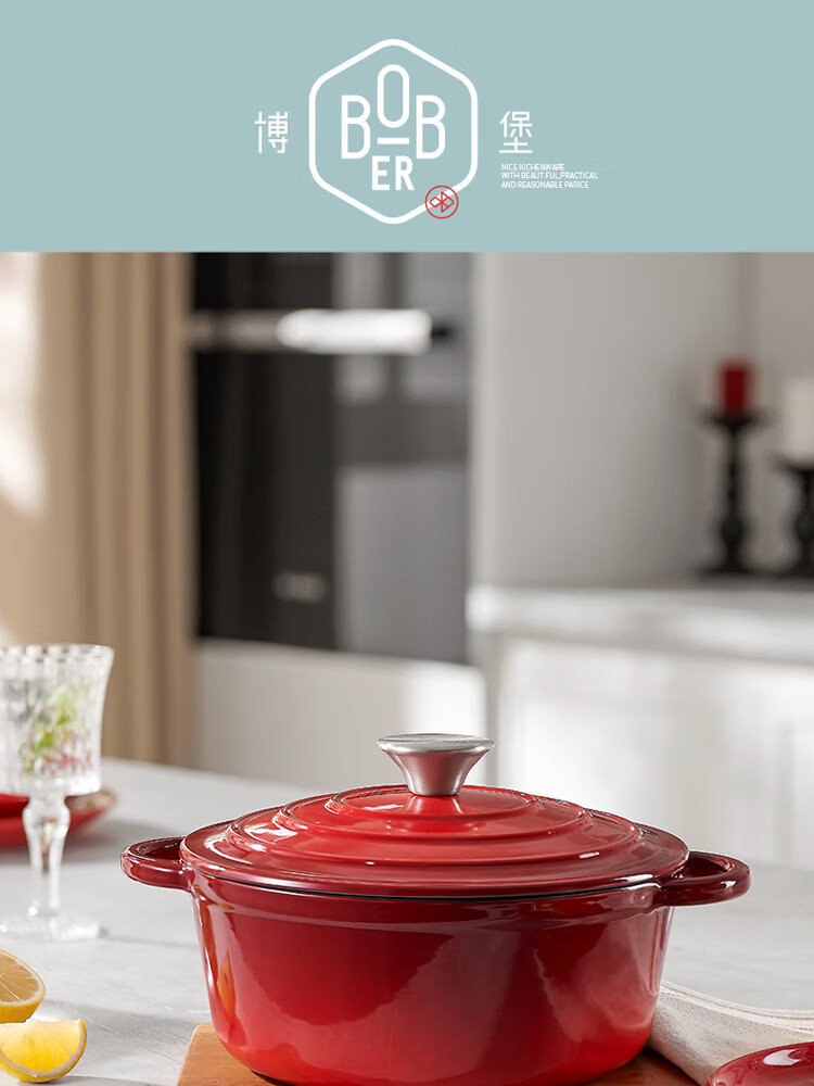 博堡 多功能炖锅珐琅铸铁锅22cmBDY-T862A-RD