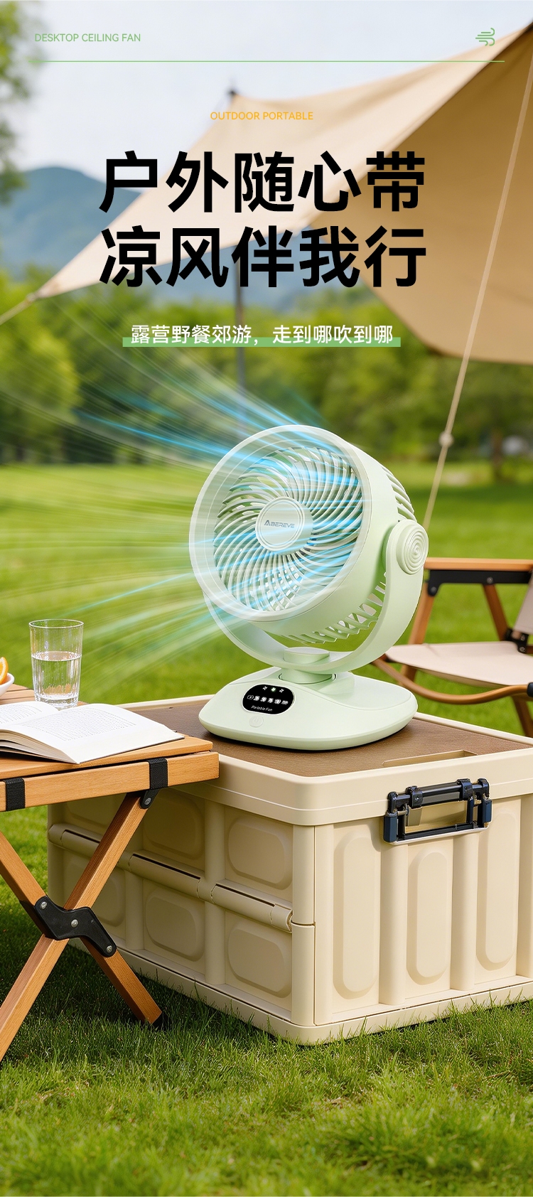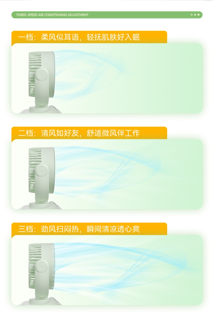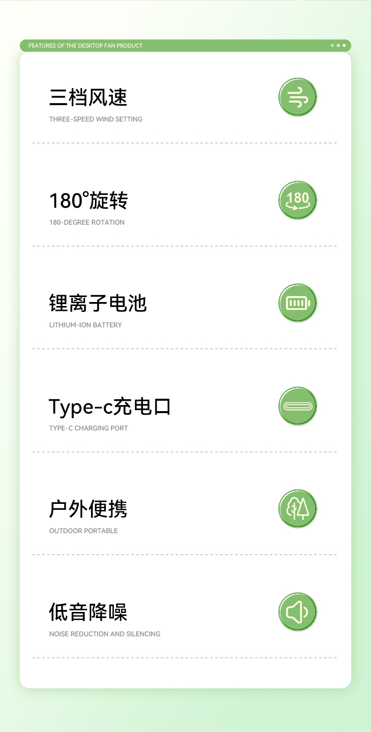 3档风力自由调节;2400mAh大容量电池 户外风扇;无线自由 告别线缆束缚