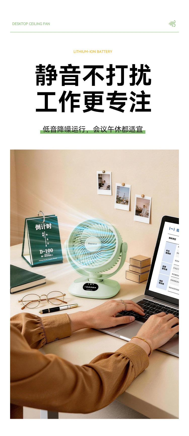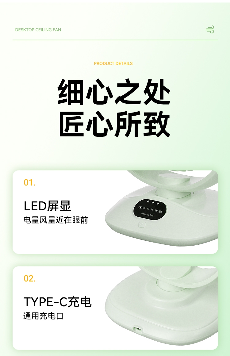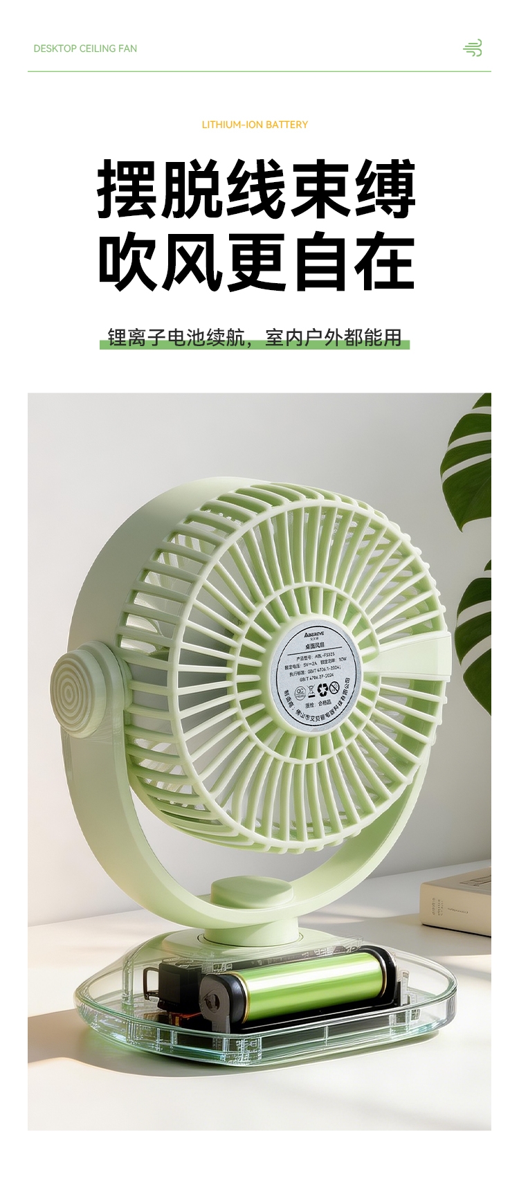 3档风力自由调节;2400mAh大容量电池 户外风扇;无线自由 告别线缆束缚
