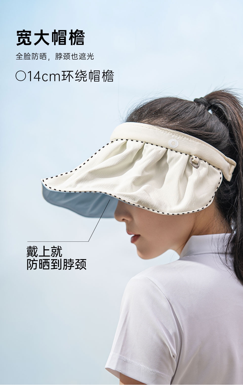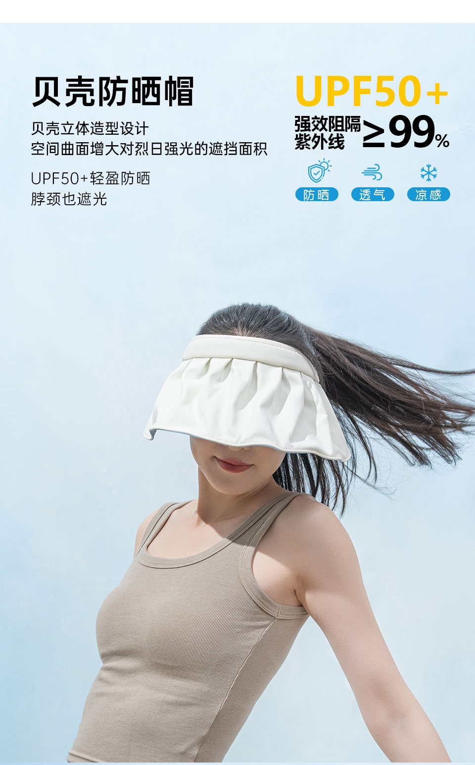 贝壳防晒帽;可调节头尾;防晒冰袖