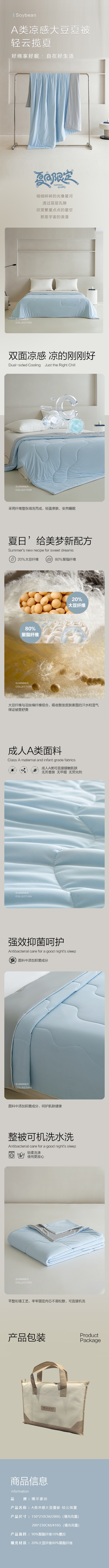 采用成人A类面料,高凉感面料,接触瞬间降温;甄选优质大豆蛋白纤维,蓬松柔软、透气排湿;整张定型 + 加固绗缝,机洗不结团、不起坨