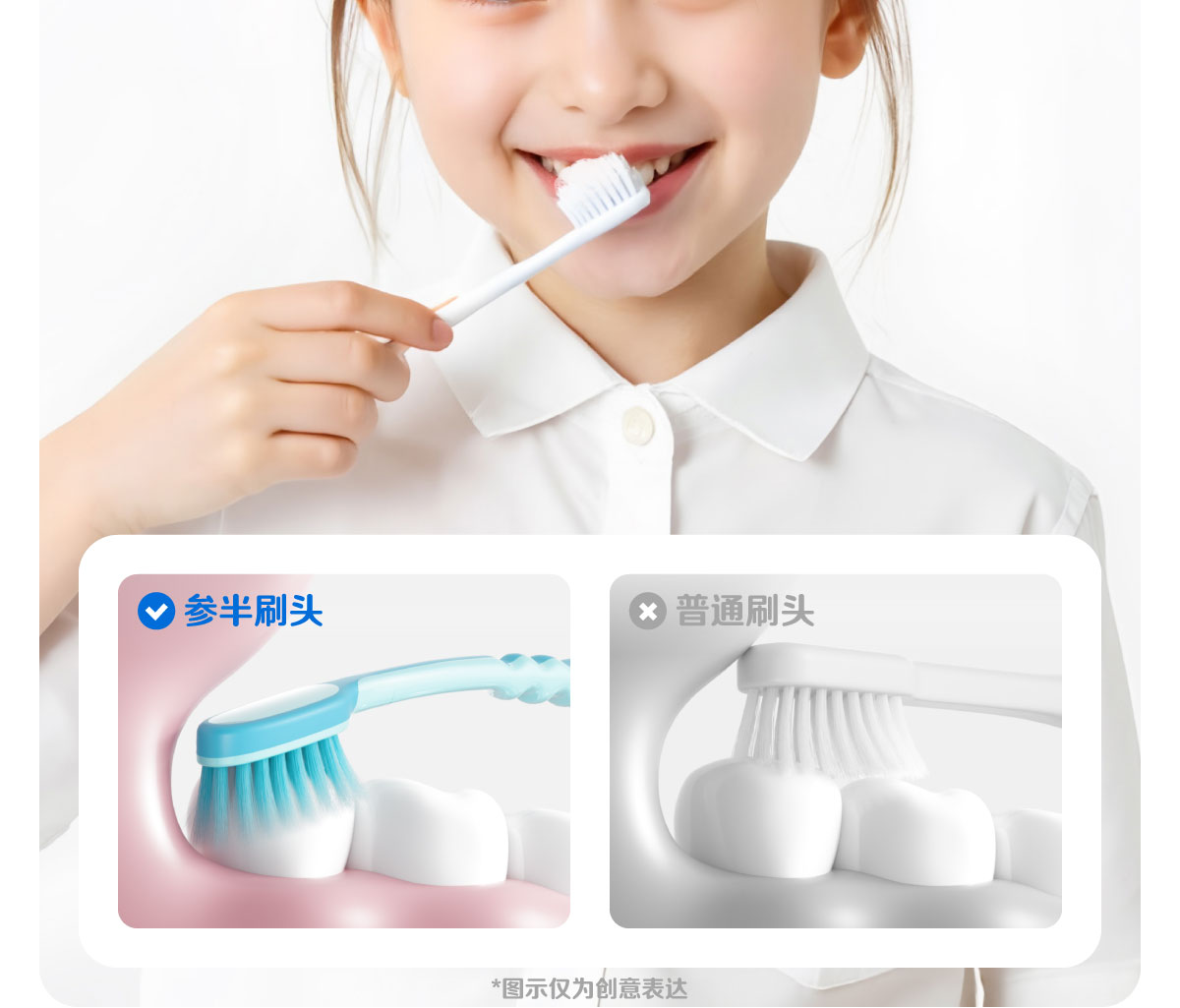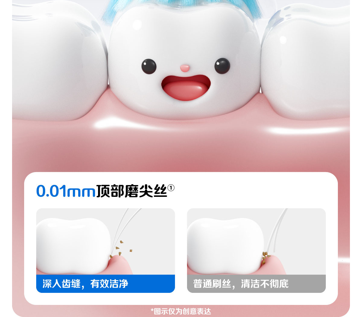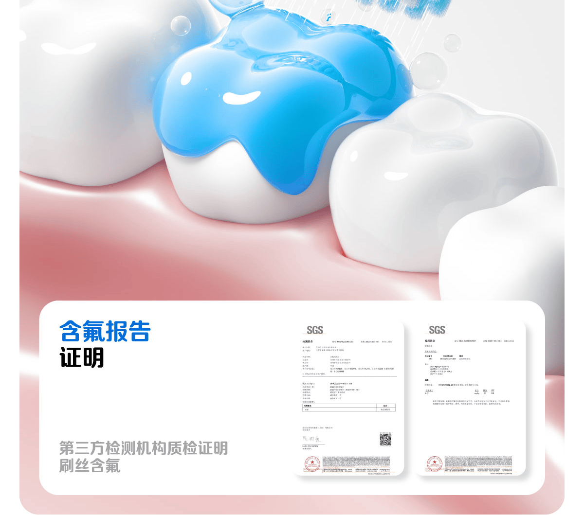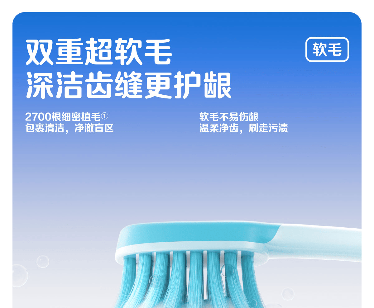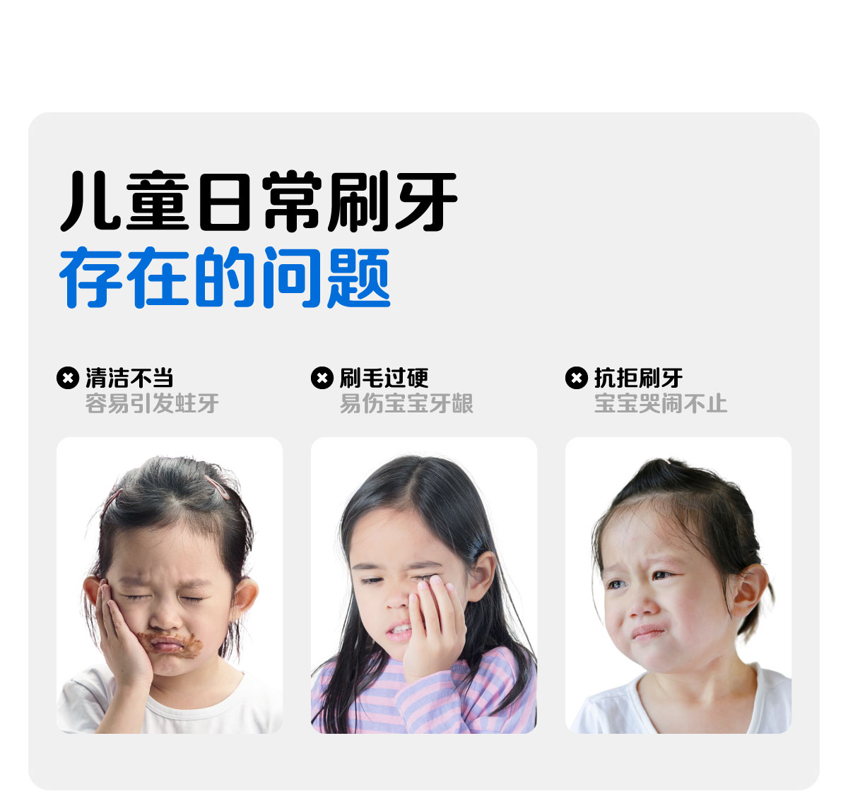 超软细密刷毛,温和护龈,轻柔呵护宝宝幼嫩牙齿;含氟护齿配方,有效防蛀防龋,坚固牙釉质;可爱吸盘底座,摆放干净卫生,宝宝爱刷牙