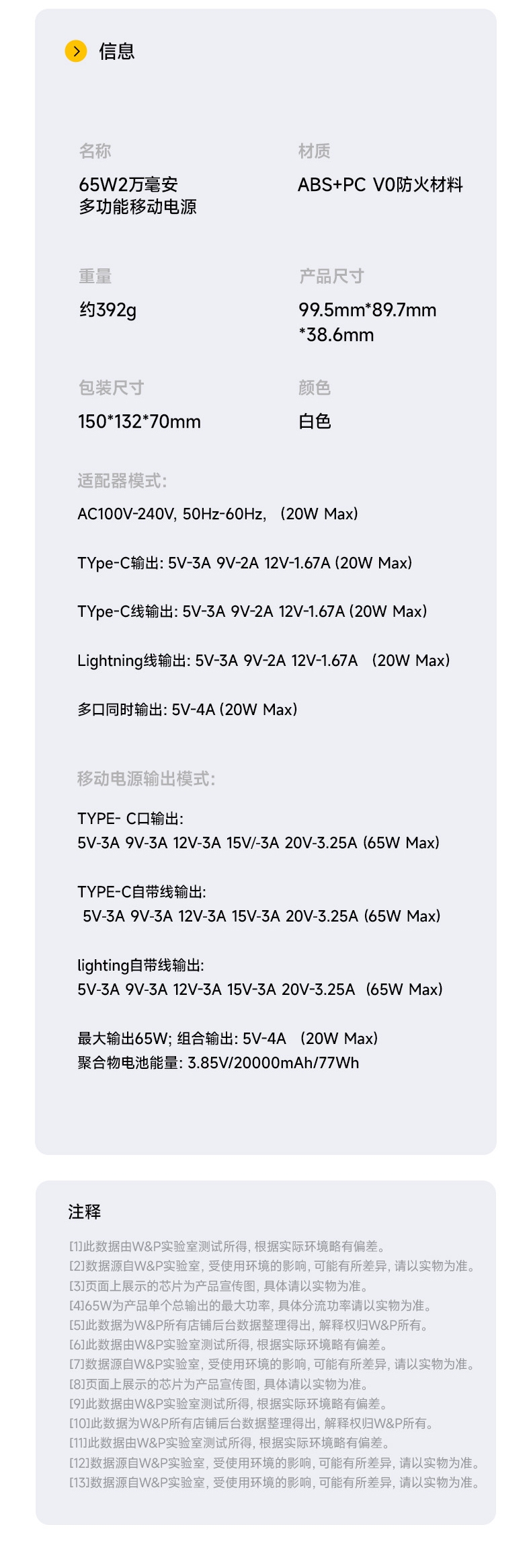 W&P 移动电源65W多功能E1101