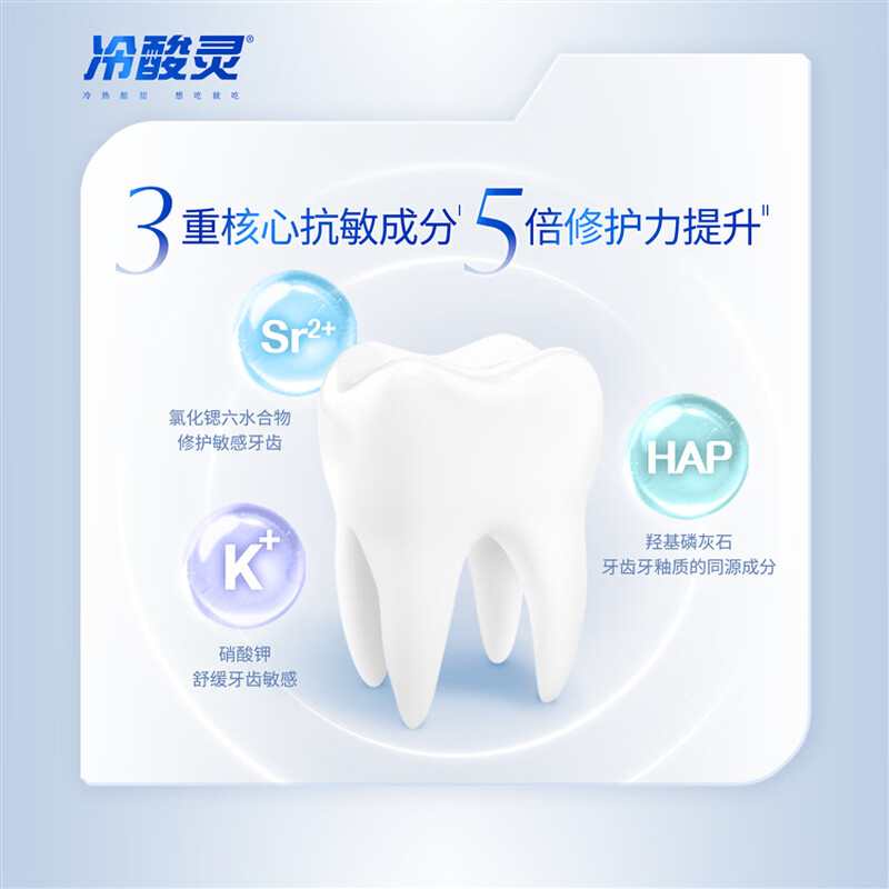 3重抗敏感 5倍修护力;添加羟基磷灰石是牙齿牙釉质的同源成分;直立泵式设计 定制工艺;匠心专研 实力守护国人口腔健康。;无惧敏感专业守护