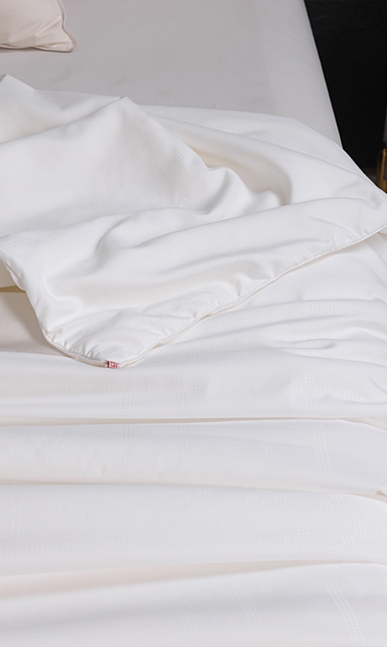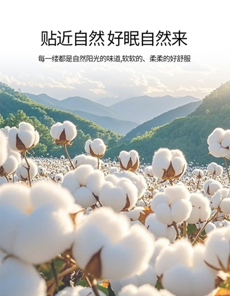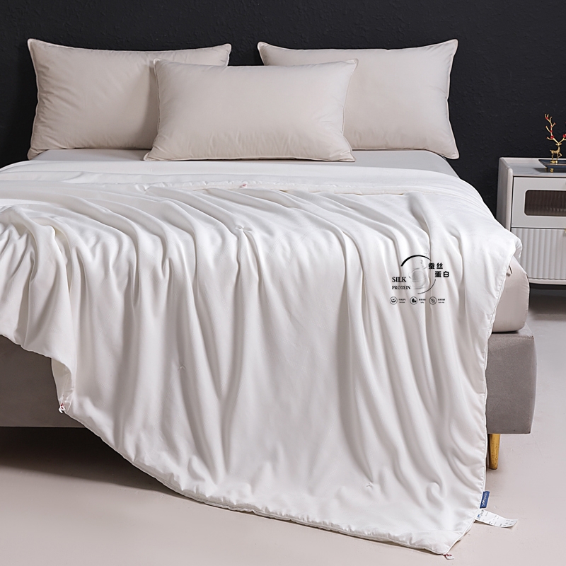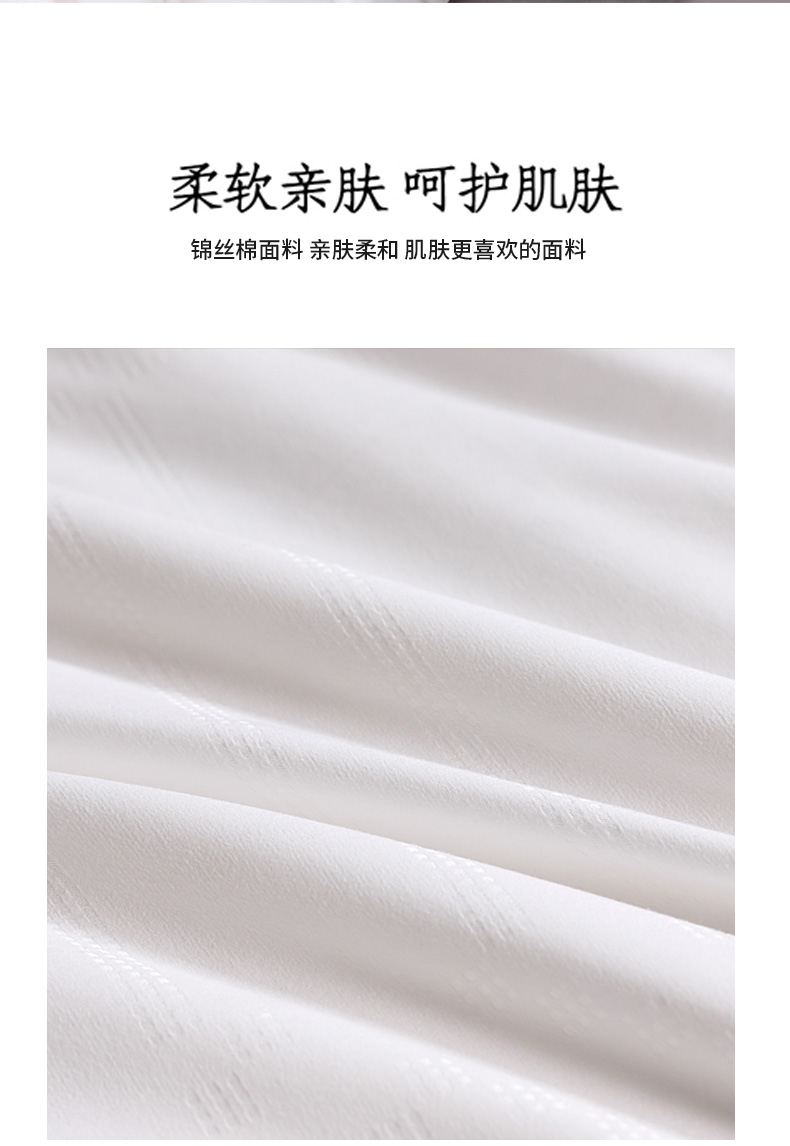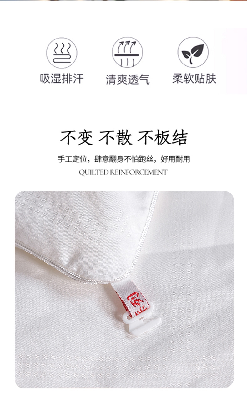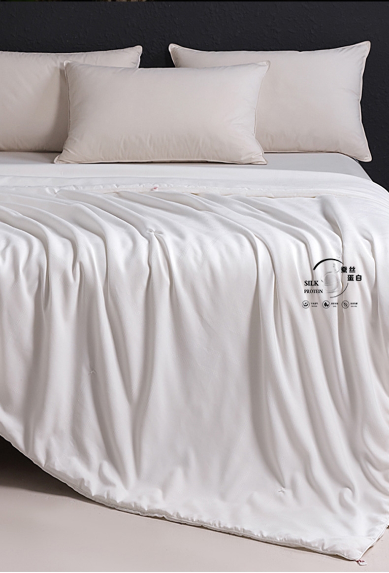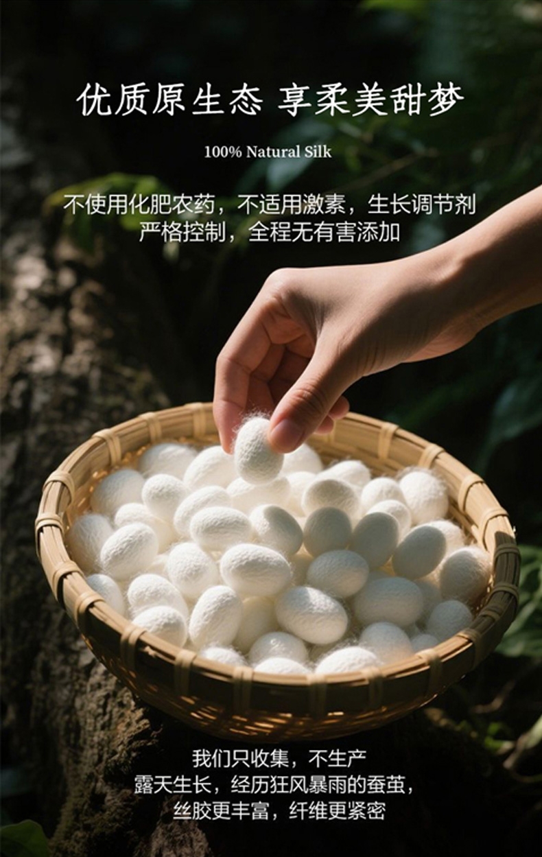 填充100%蚕丝;锦丝棉天然纤维,轻盈软糯;给肌肤云朵般的舒适包裹感,有效提升睡眠质量