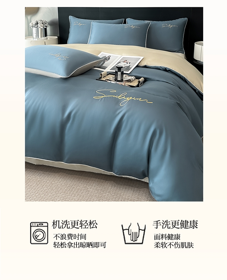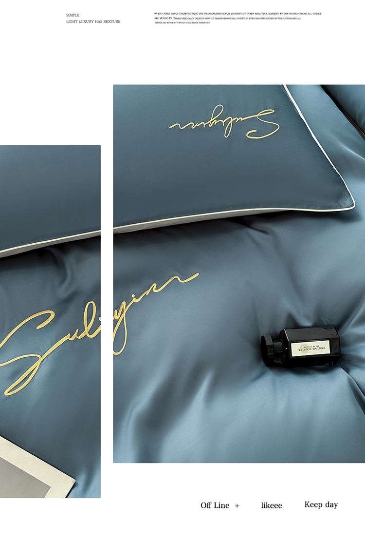 打造高颜值空间:享受浪漫生活:水洗冰丝刺绣四件套;柔软与舒适兼得宠爱加倍 生活需要浪漫需要爱更需要;光滑如丝,走进细细抚摸也能感受到水洗冰丝的细微之美