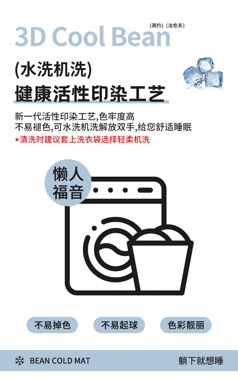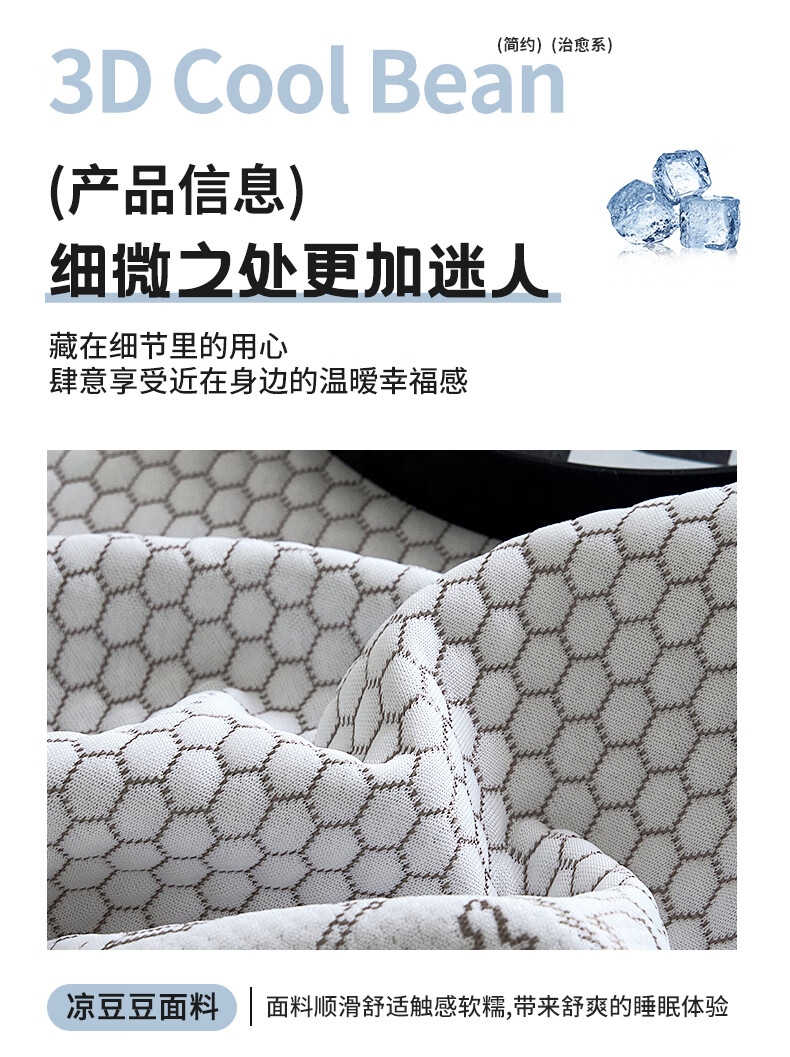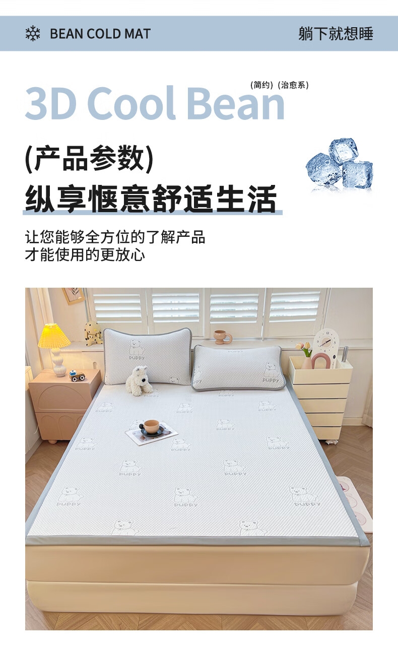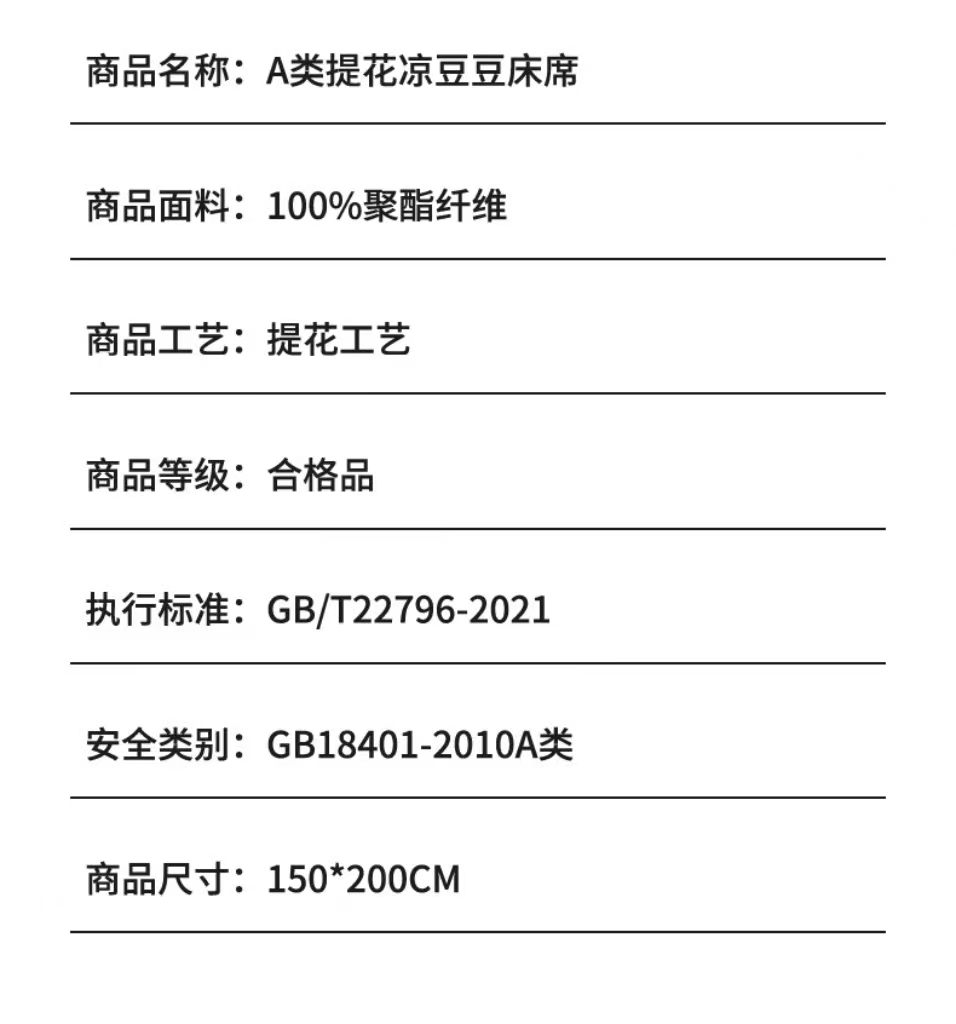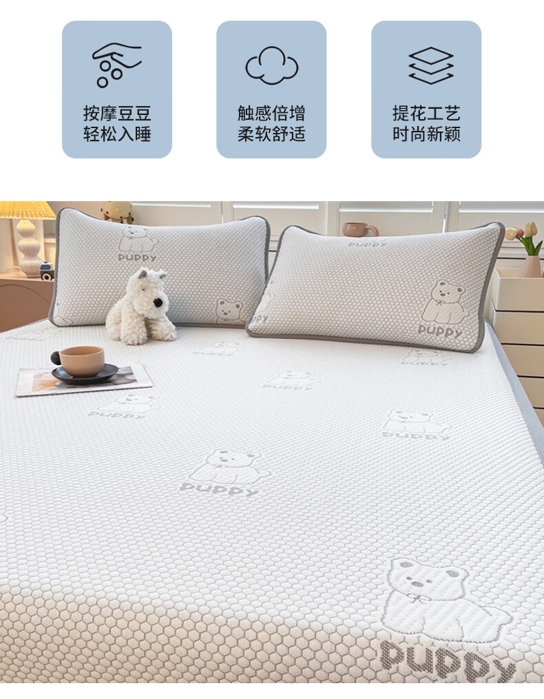 健康活性印染工艺,卡通压花时尚美观;面料顺滑细腻,享受清凉好眠;简约风纯色凉豆豆凉席,透气舒适。不感闷热,