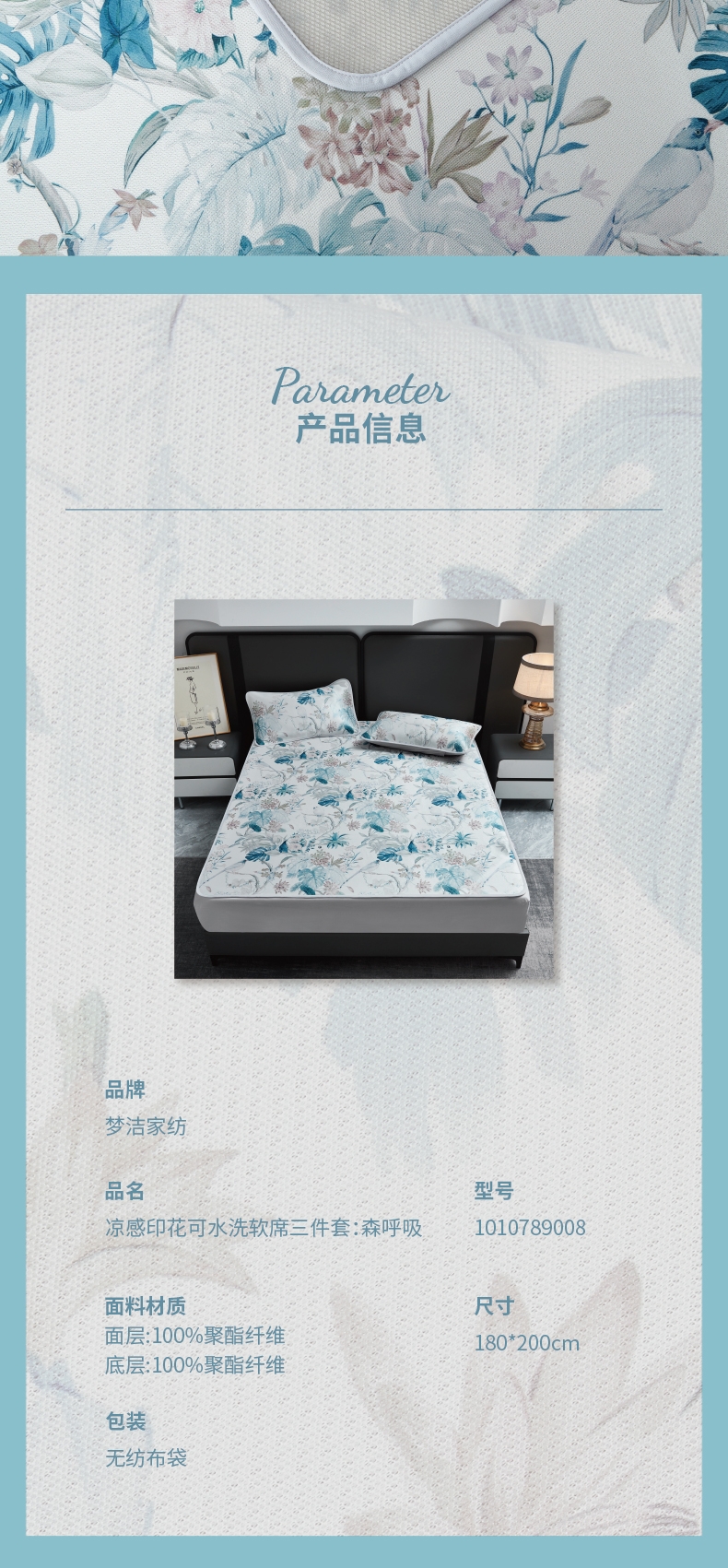 梦洁家纺 凉感印花水洗软席三件套1010789008