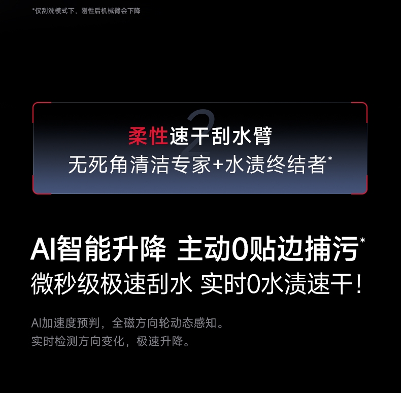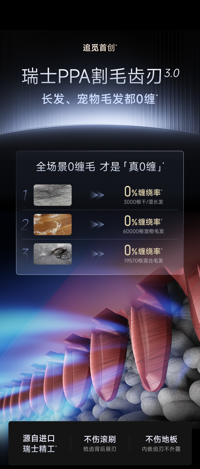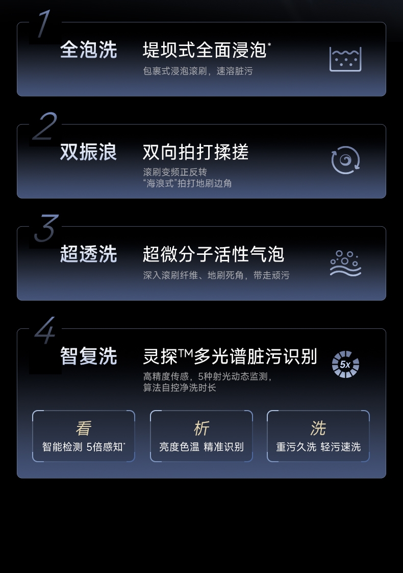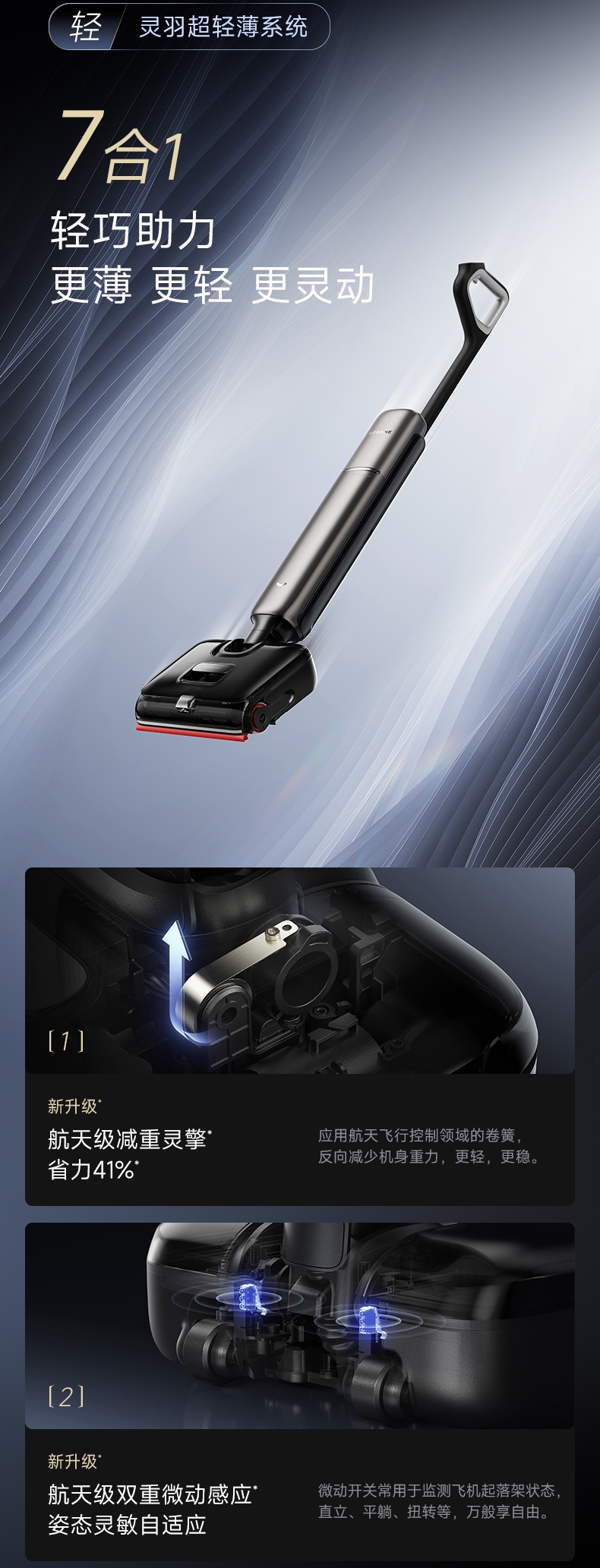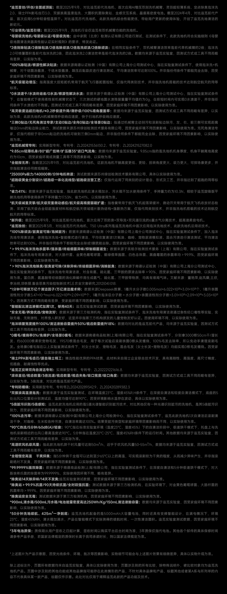 2倍刮除粘渍,0水渍0贴边;9.85cm超薄机身;25000pa飓风大吸力