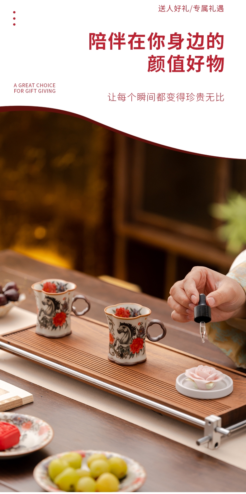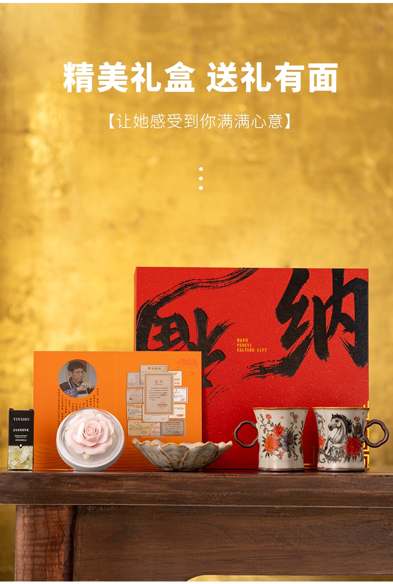 母亲节瓷雕玫瑰香薰精油对杯套装