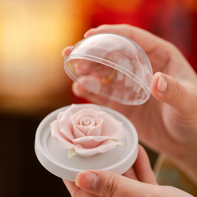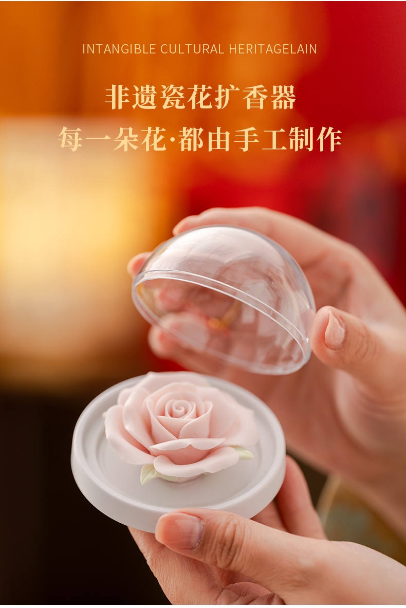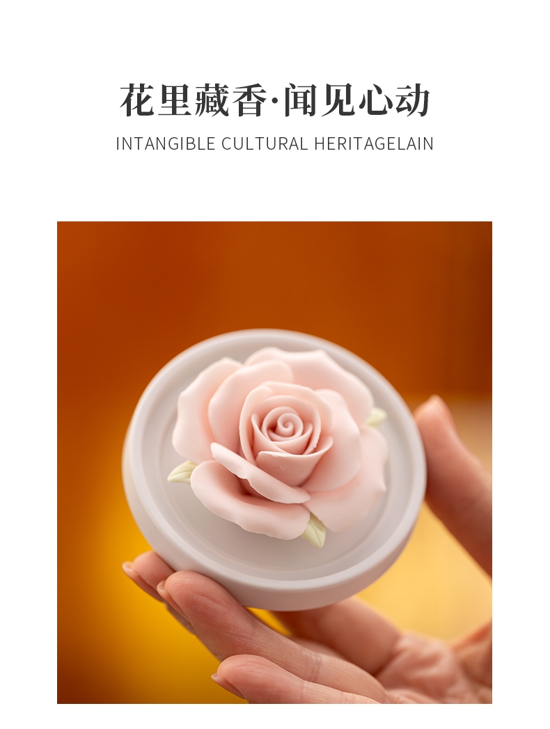 母亲节礼品,香薰套装,非遗文化手工瓷雕玫瑰,扩香器;配精油一瓶。亚黄汝瓷,玛瑙入釉,蝉翼开片,内外皆有;画面,家有千财万贯,不如汝窑一片。