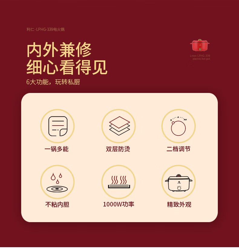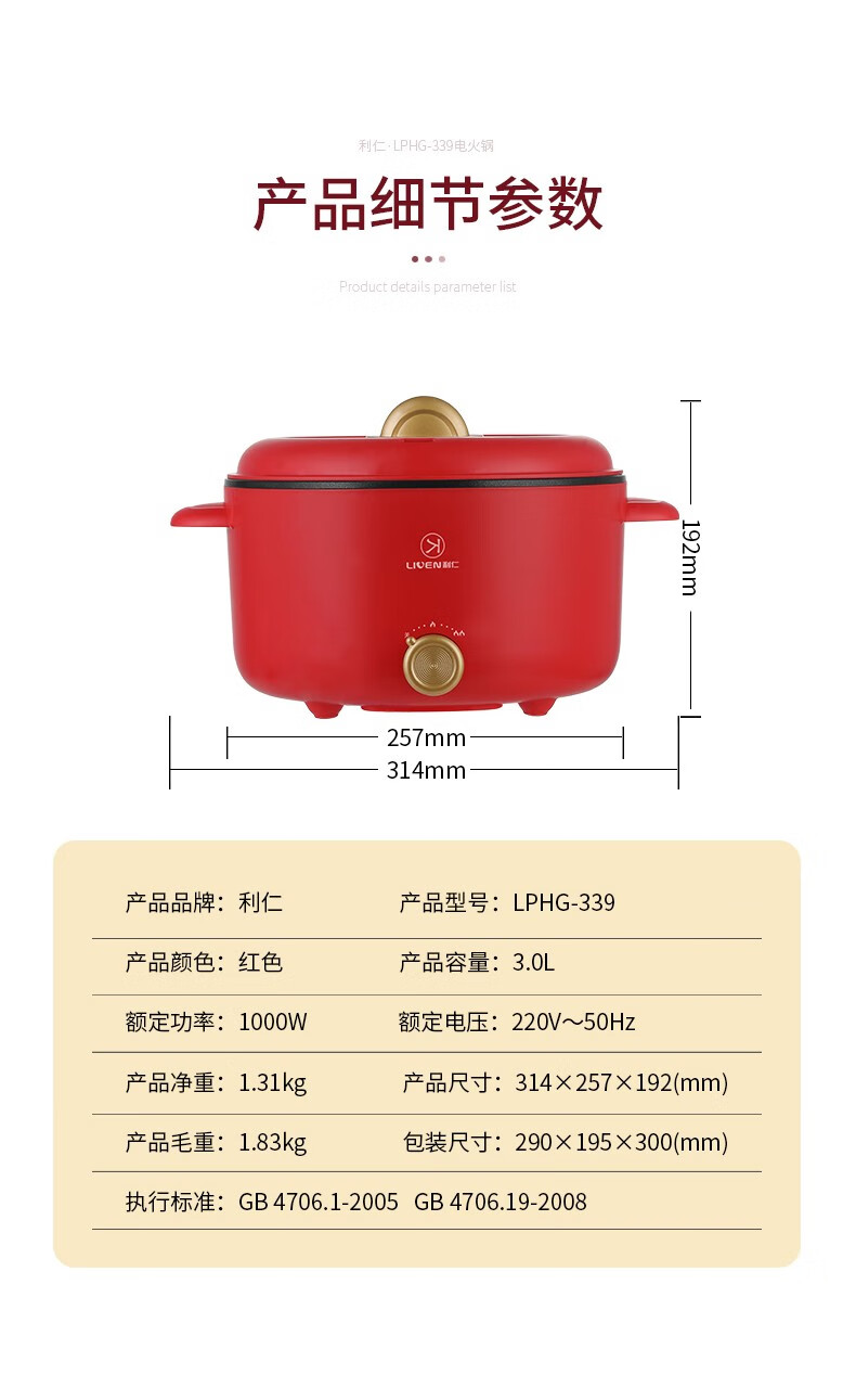 利仁 家用电火锅电热锅LPHG-339
