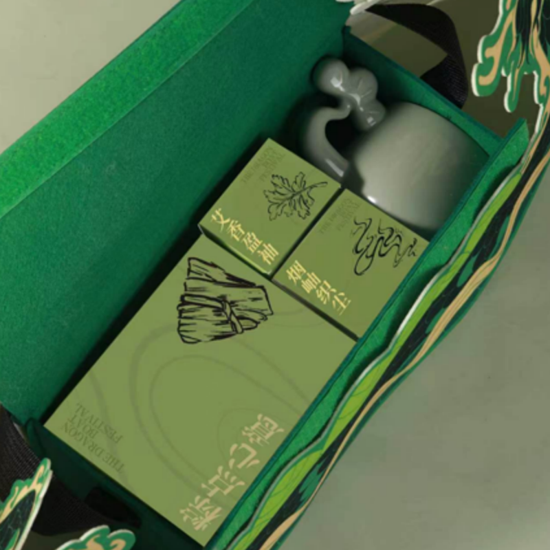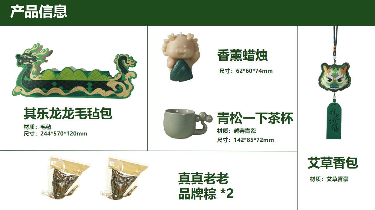 配置:其乐龙龙毛毡包*1、艾草香包*1、香薰蜡烛*1 真真老老品牌粽 *2 、青松一下越窑青瓷杯*1