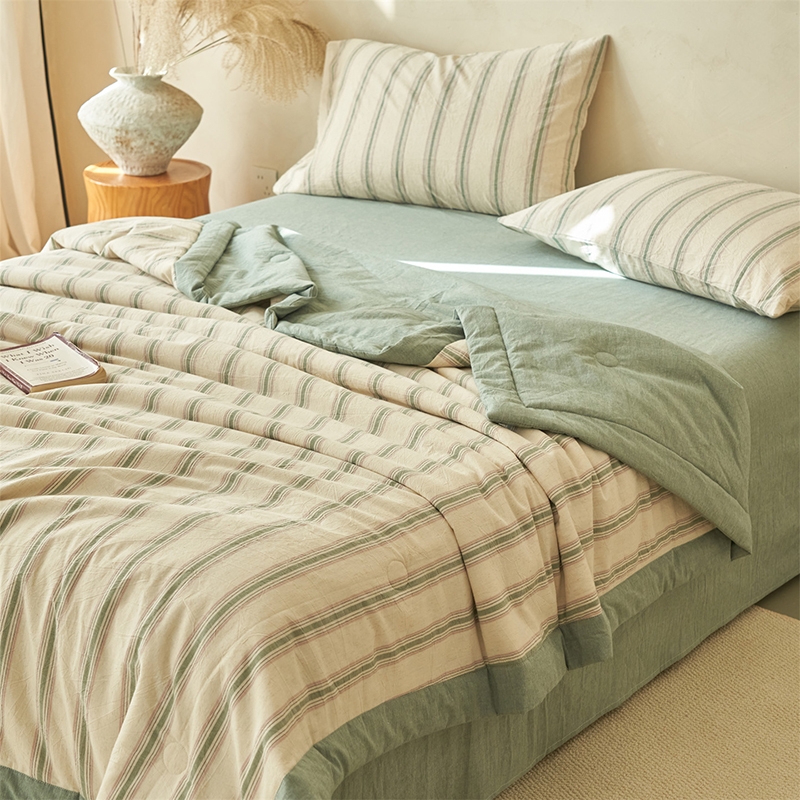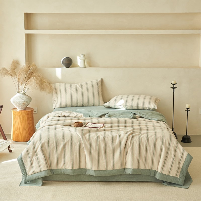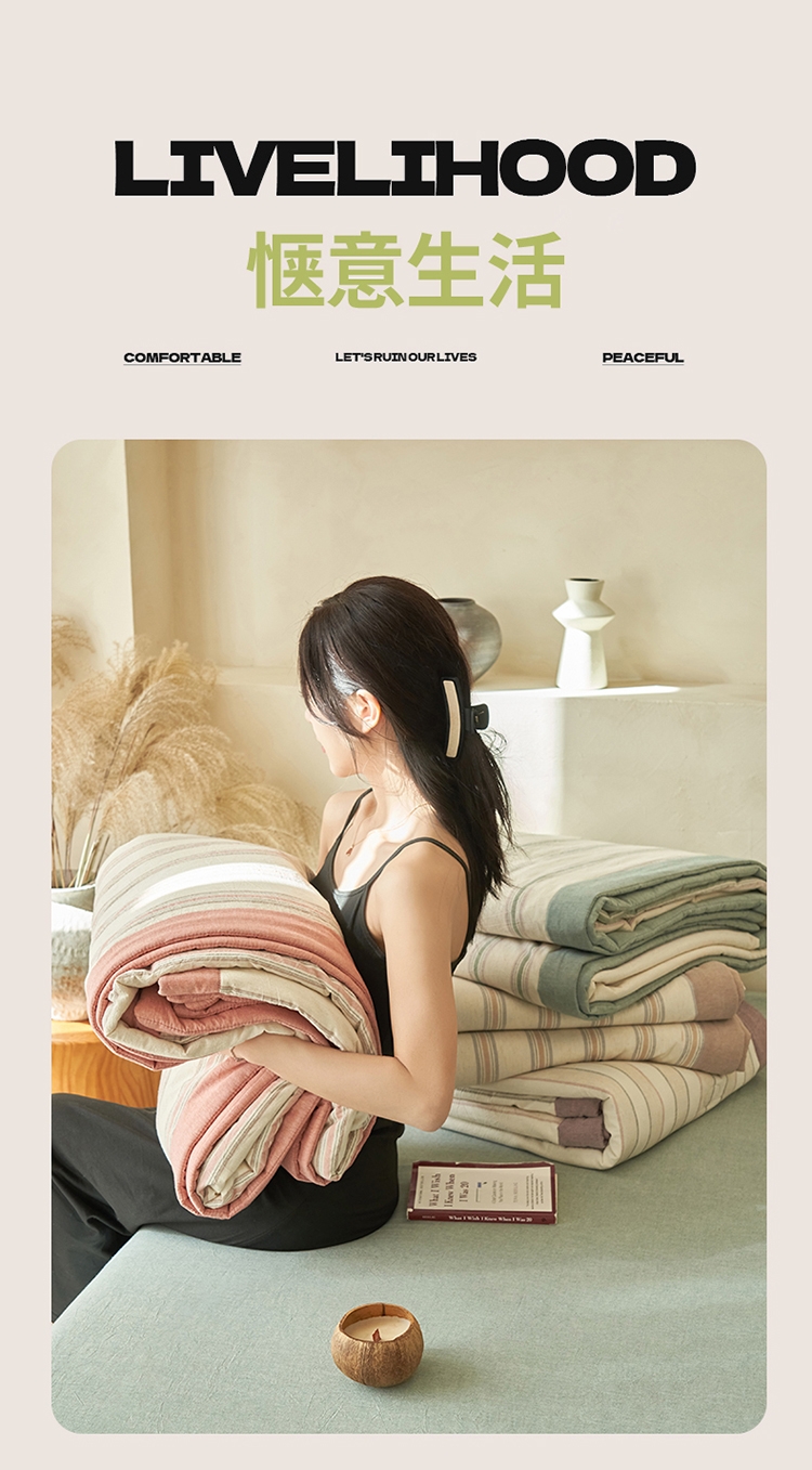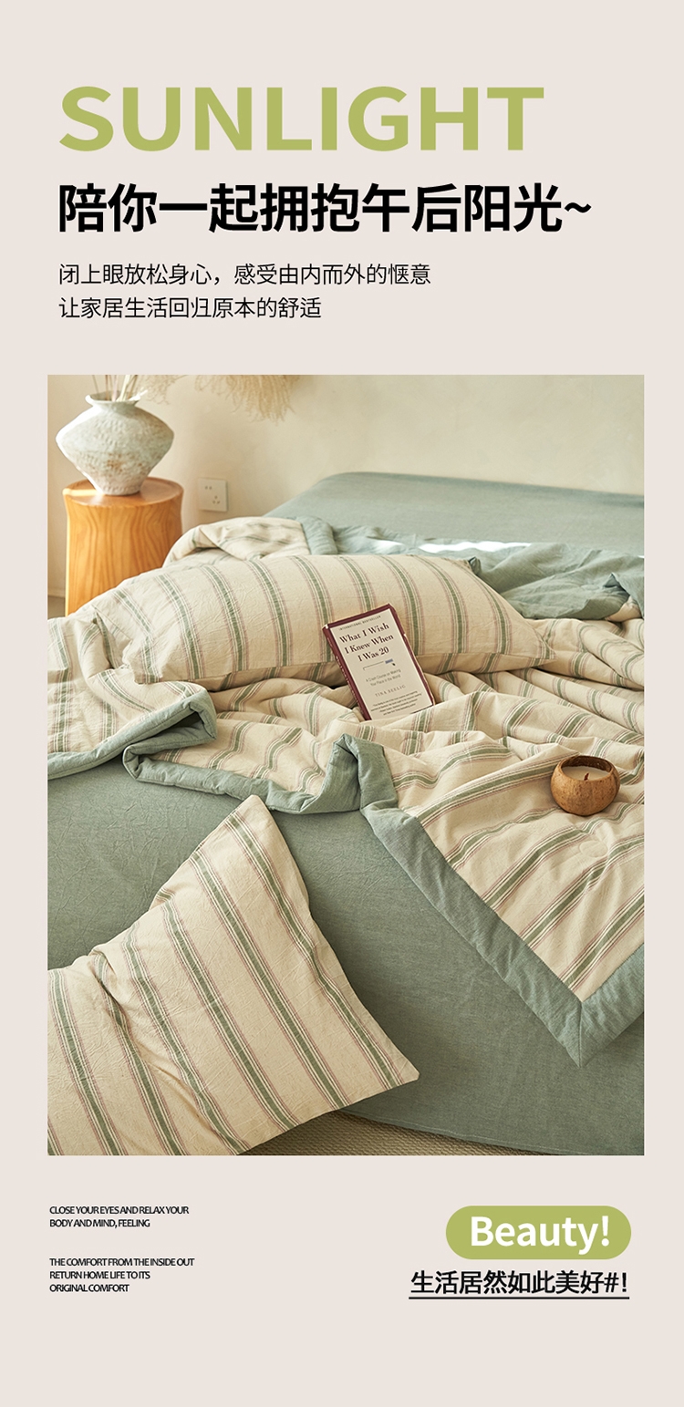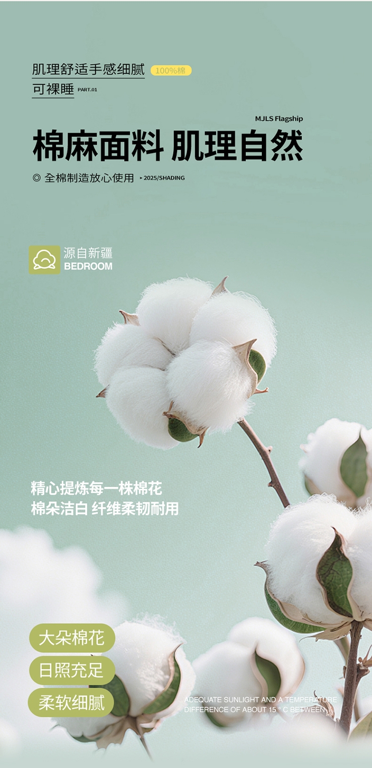 棉麻混纺面料,透气干爽不闷汗,天然亲肤更安心;纯棉花填充,蓬松柔软,轻盈不压身,凉而不冰;吸湿排汗,四季可用,易打理,夏日睡眠好搭档