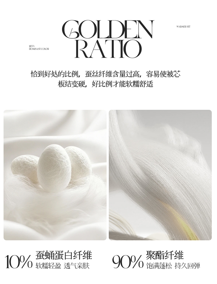 填充:10%蚕蛹蛋白+90%聚酯纤维