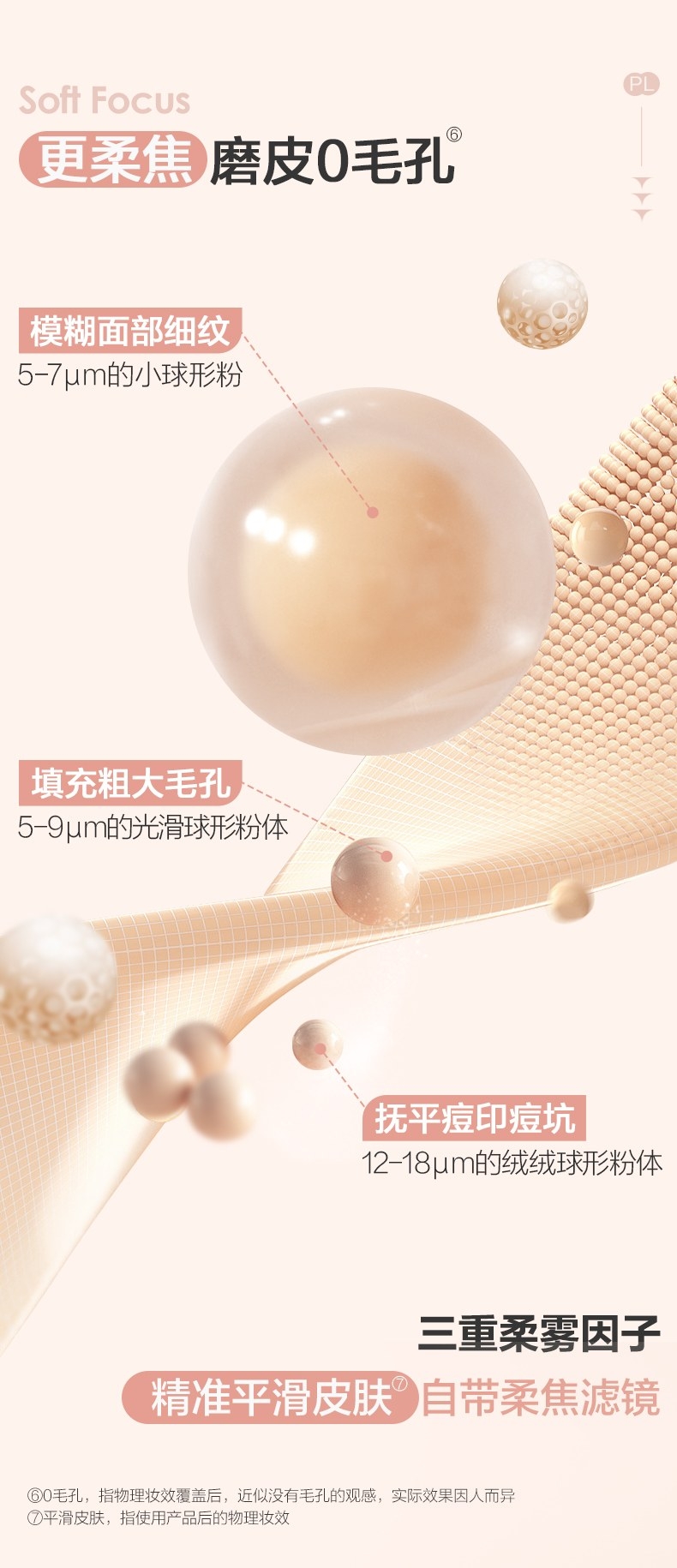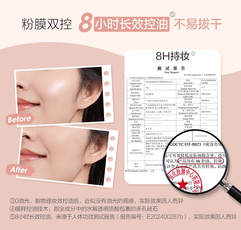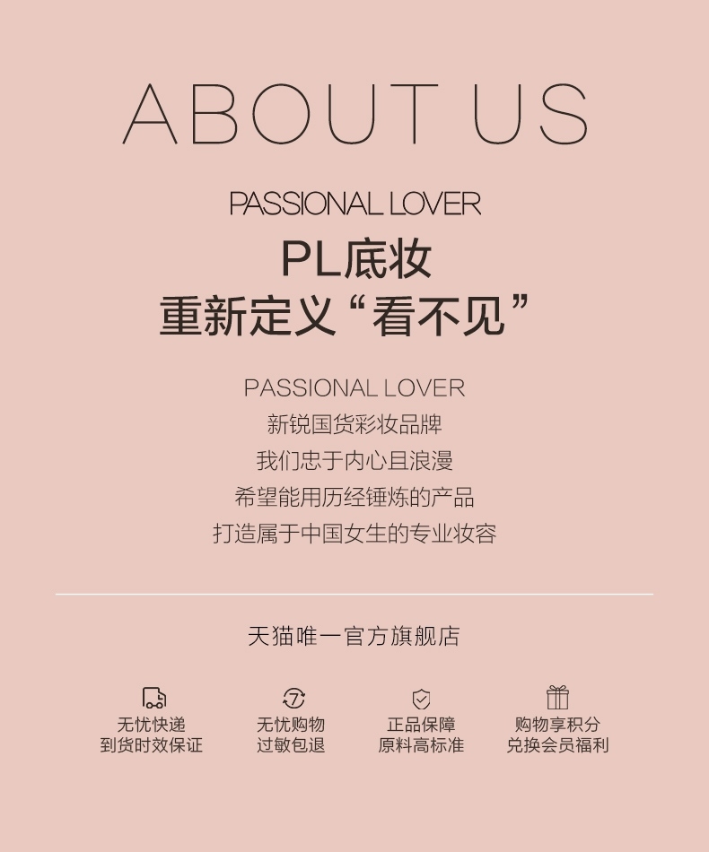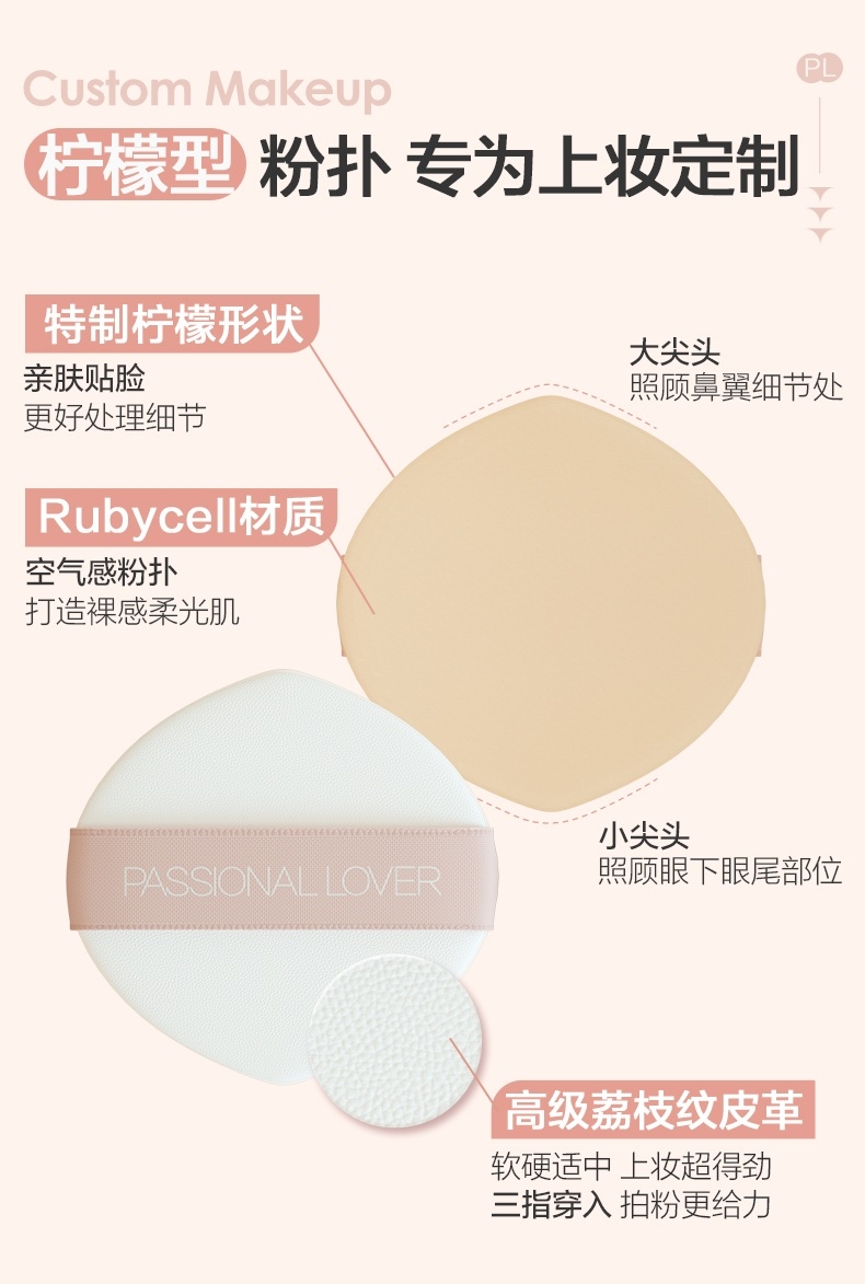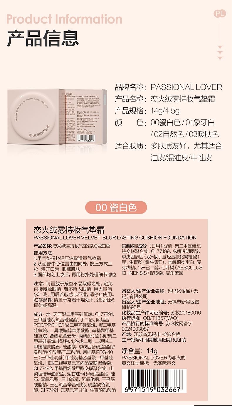 粉细不怕叠,柔焦不压光,PL蹭不掉气垫2.0;配方全面升级,打造裸感柔光肌,更控油,更柔焦、持妆;贴心设计,细节满满,半月型手指位,定制冰丝网纱