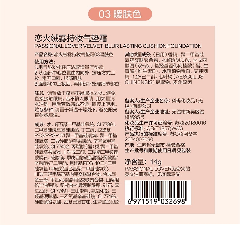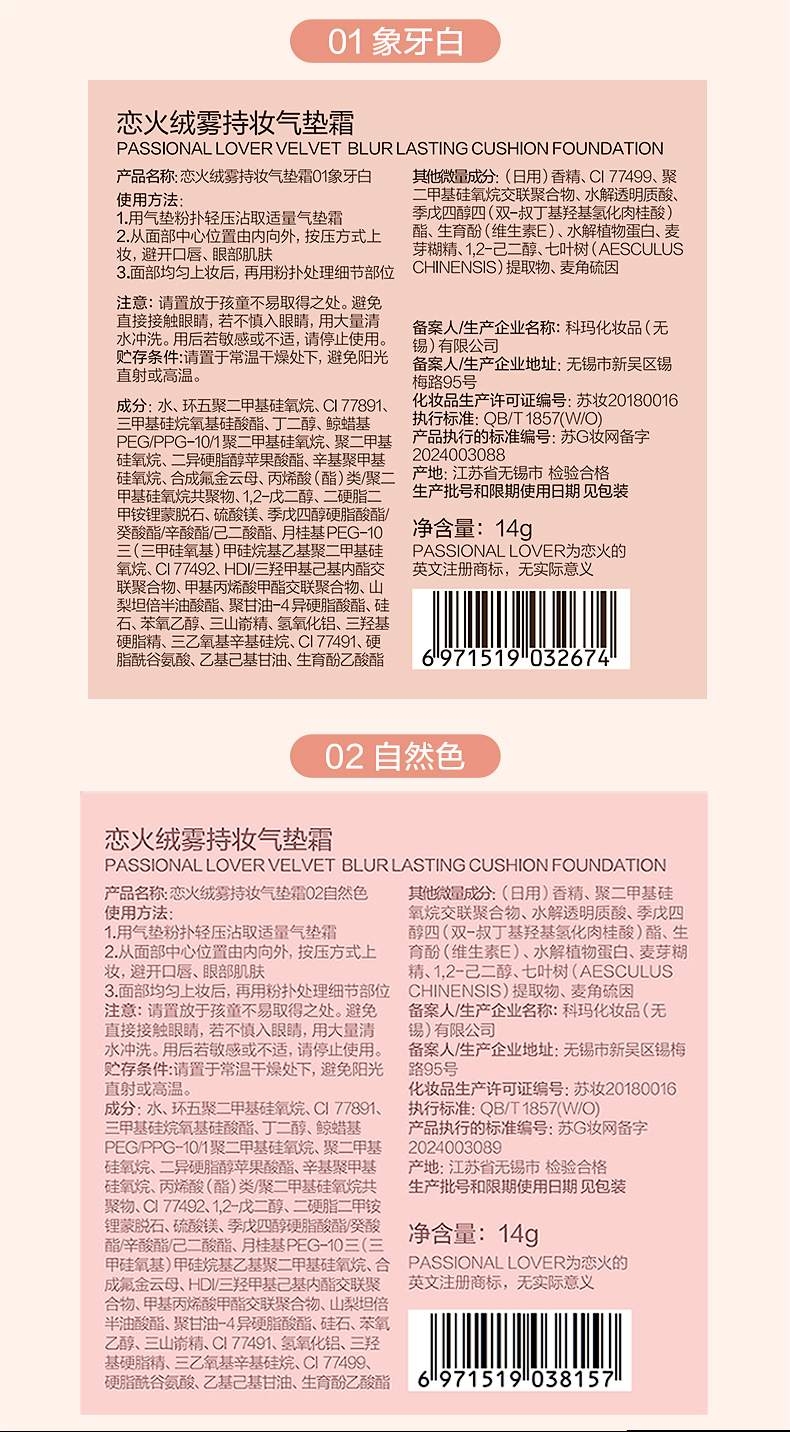 恋火 蹭不掉绒雾持妆气垫霜14g