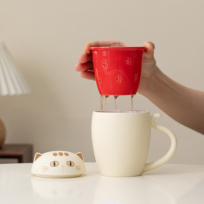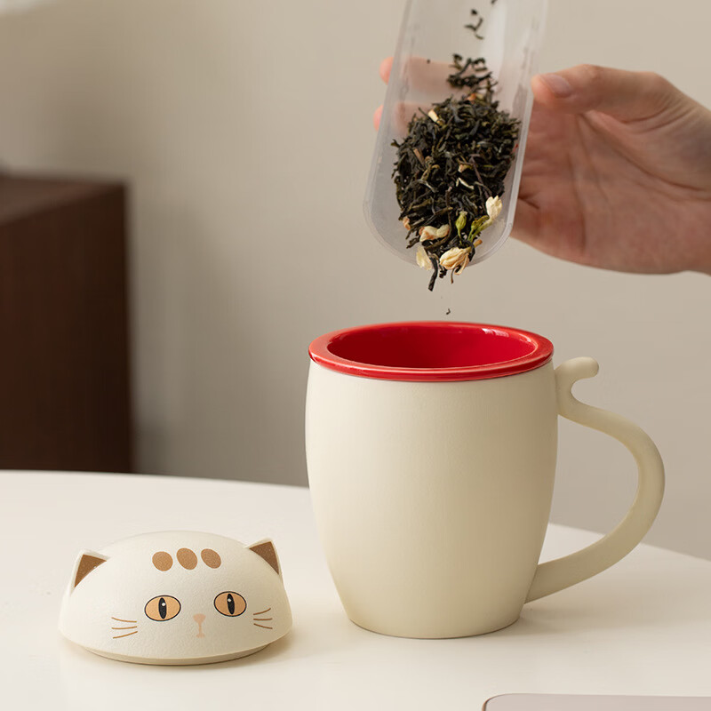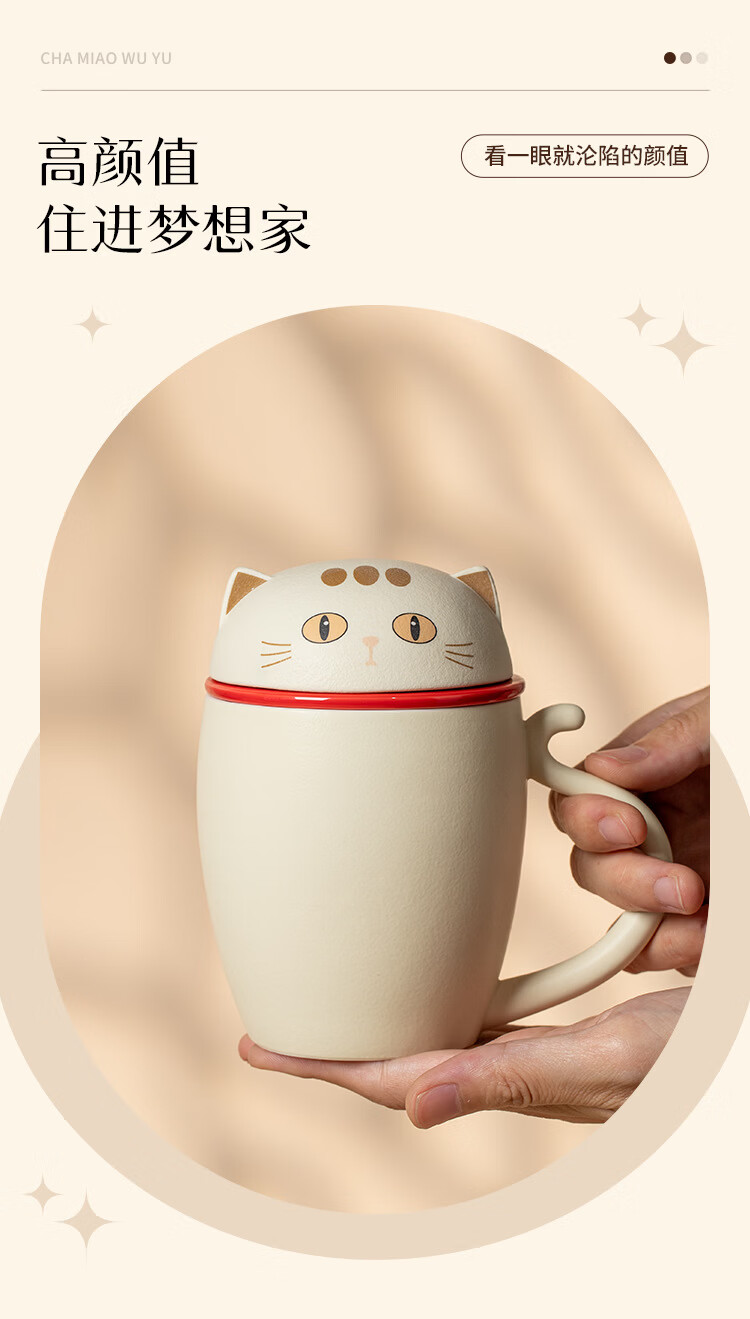 茗然说 茶喵办公杯茶叶陶瓷招财猫马克杯MKB046