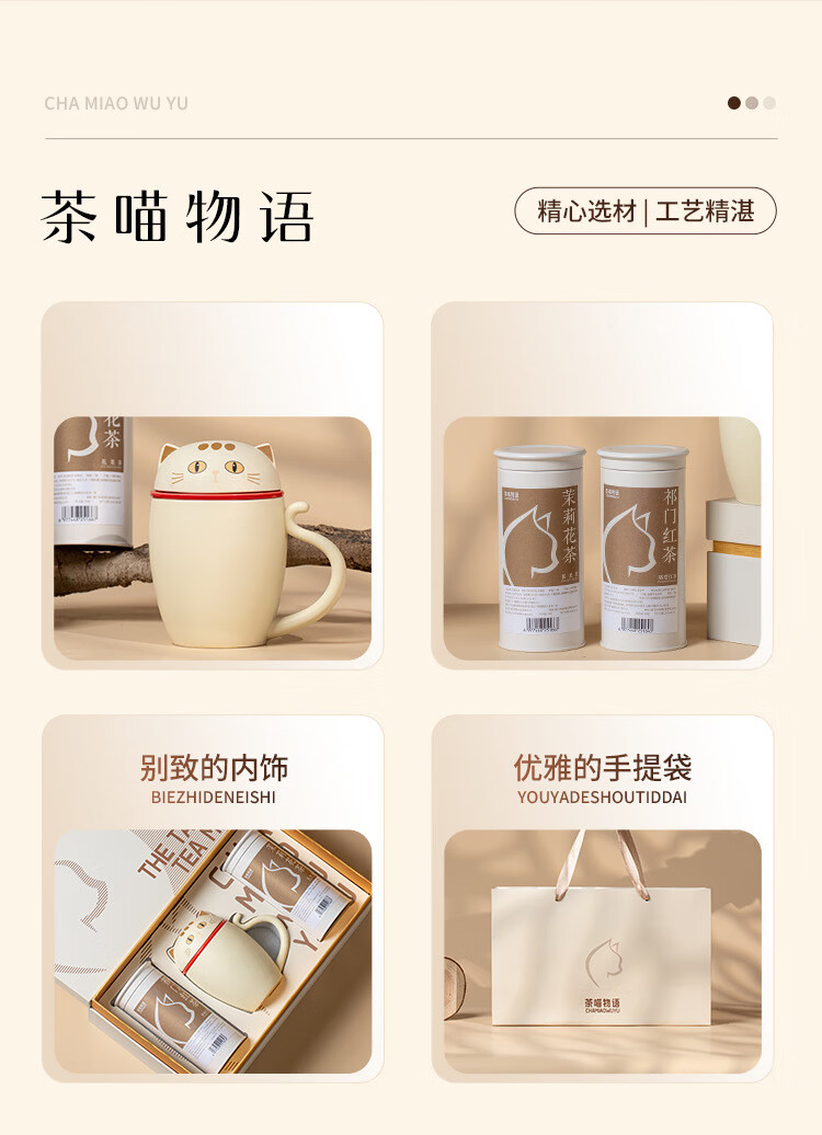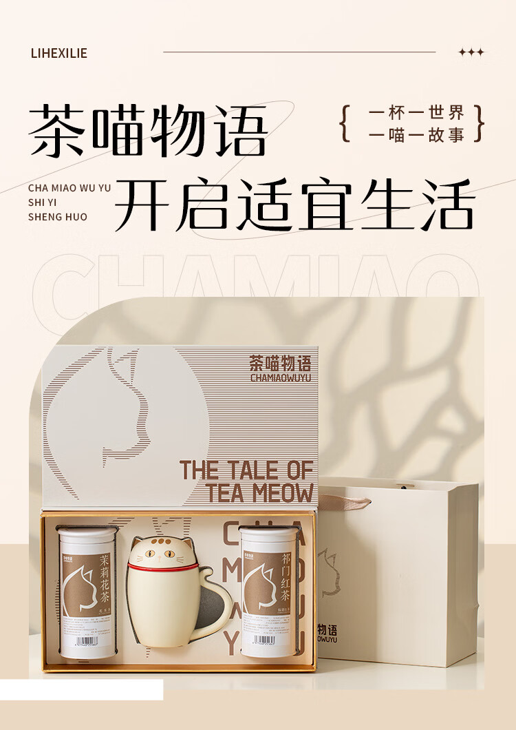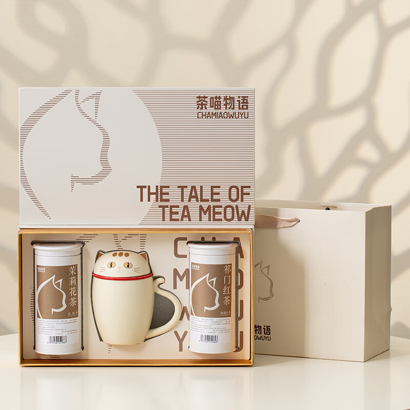 有杯,有茶伴手礼套装;献给心里住童真的你,治愈系典藏礼;招财猫马克杯伴手礼