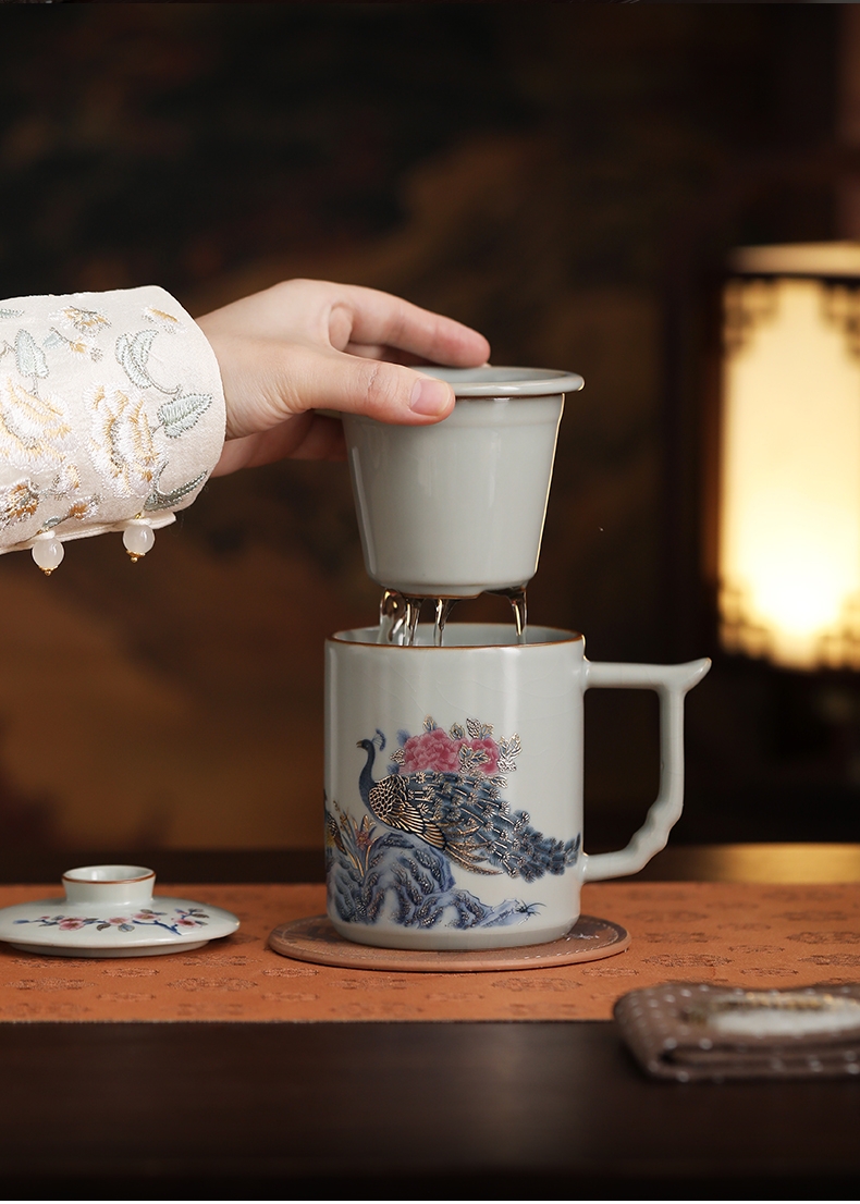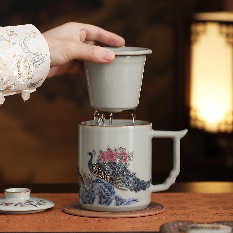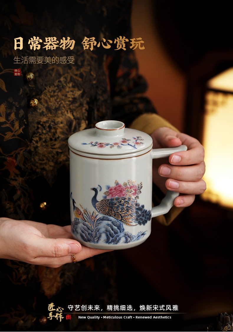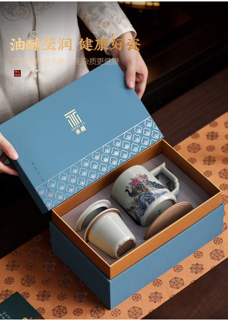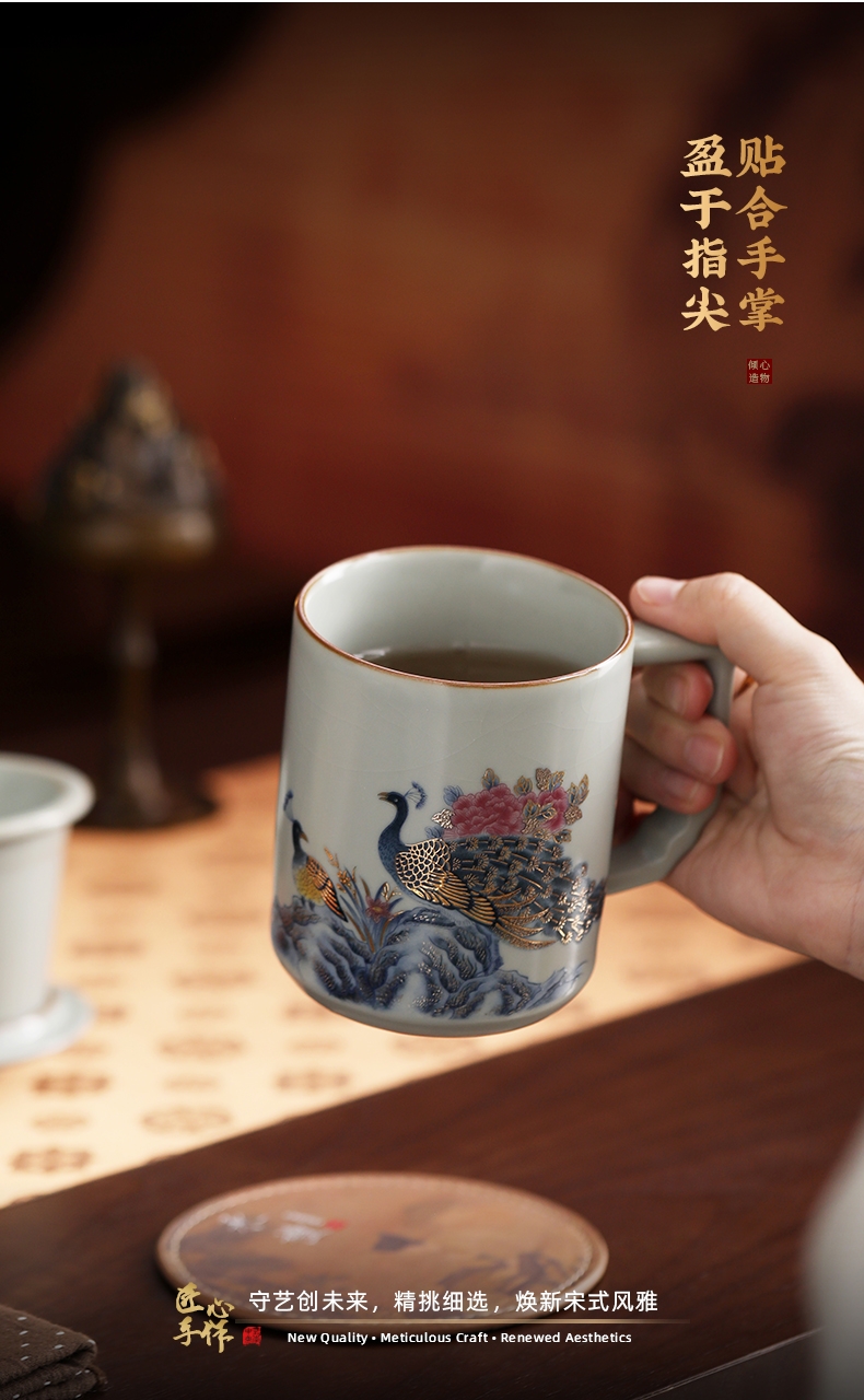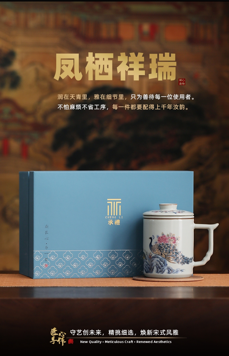 承礼 汝窑凤栖祥瑞中华盛世办公杯