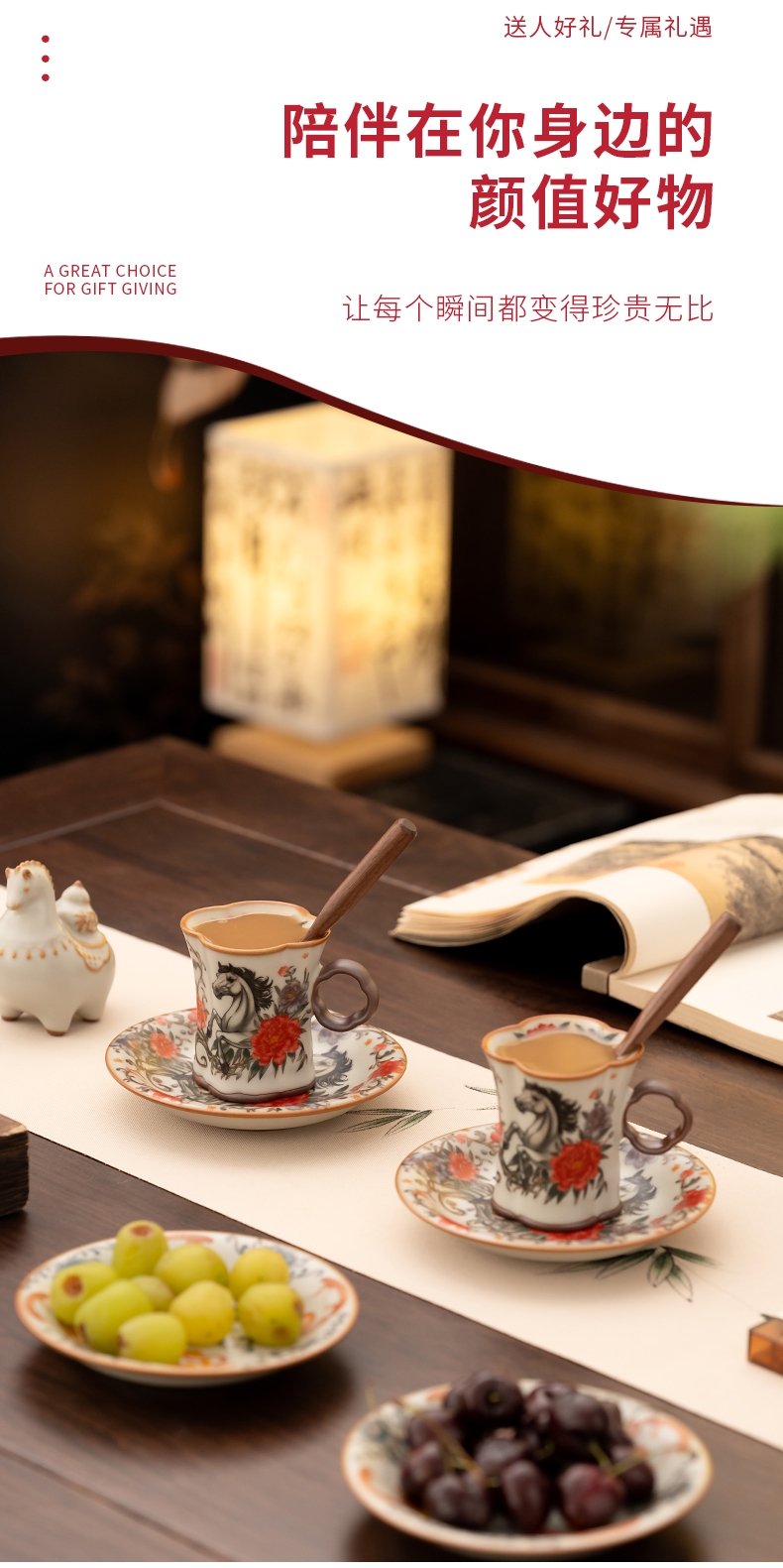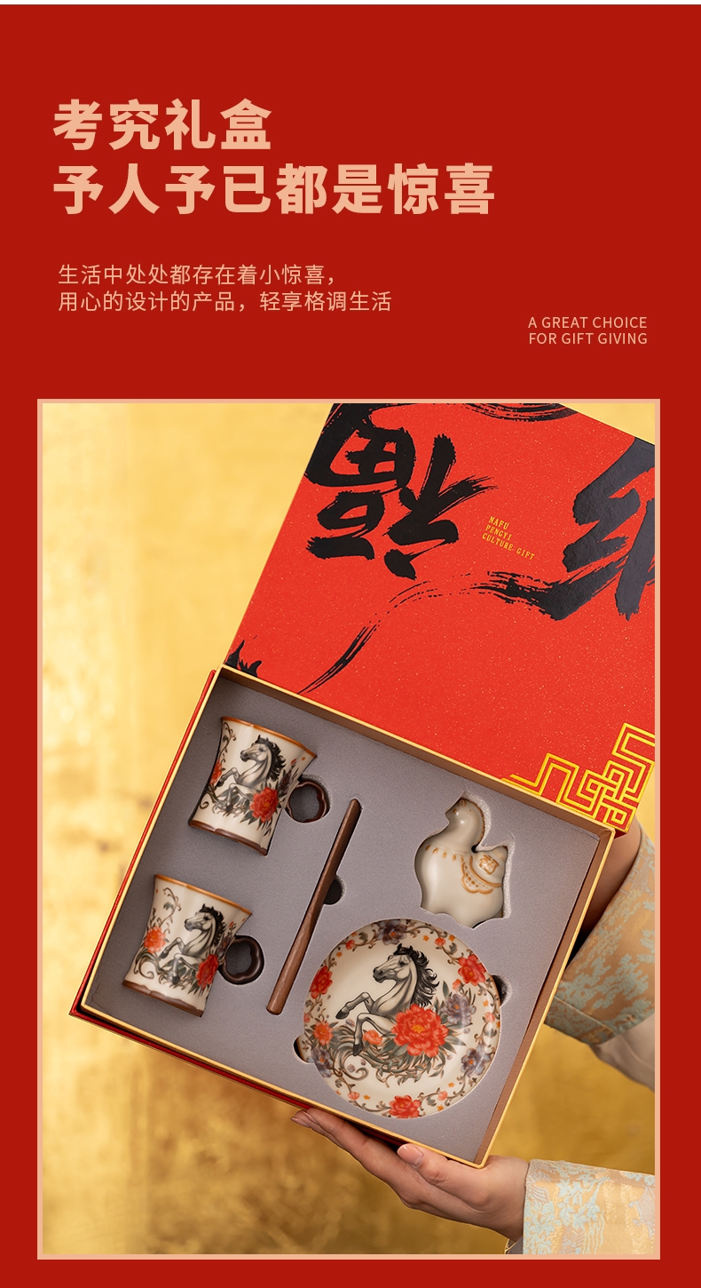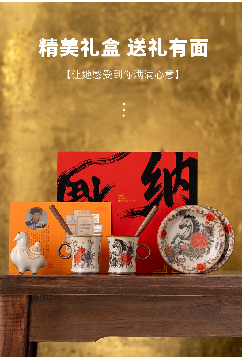 配 制:2杯 2盘 2实木搅拌棒 1摆件 1收藏证书 1礼盒 手提袋