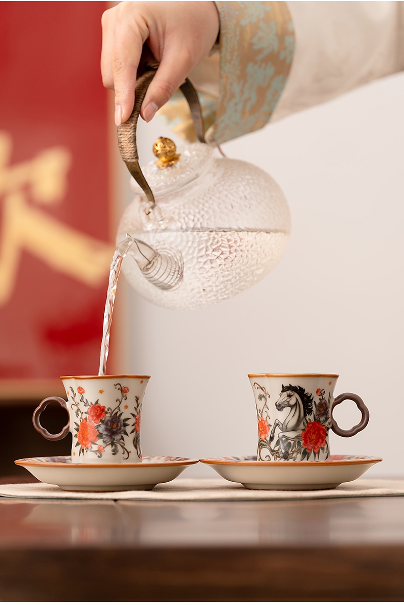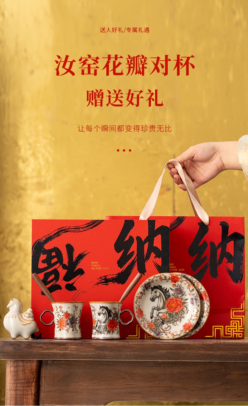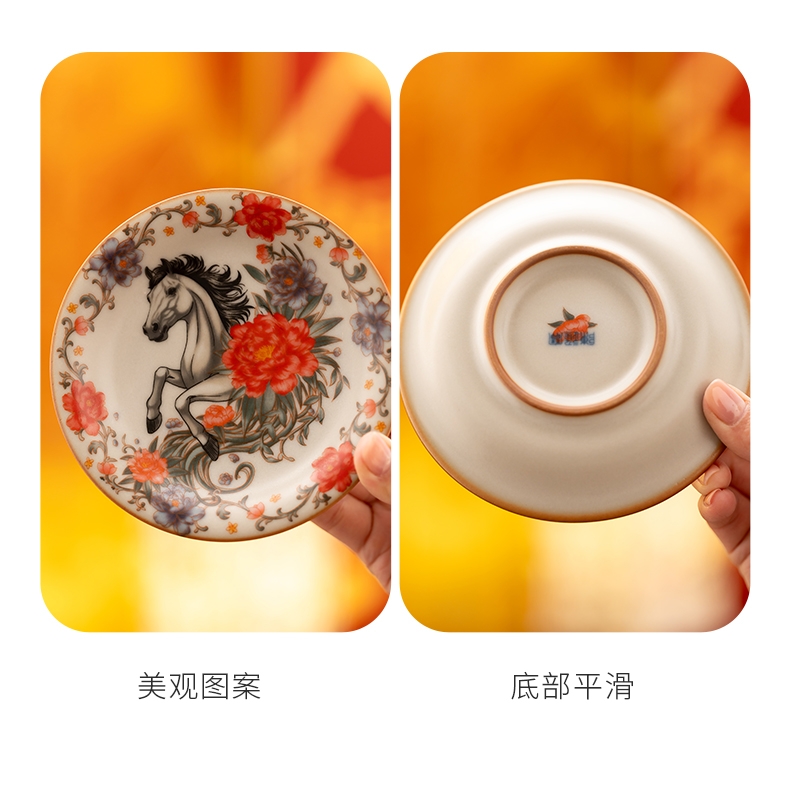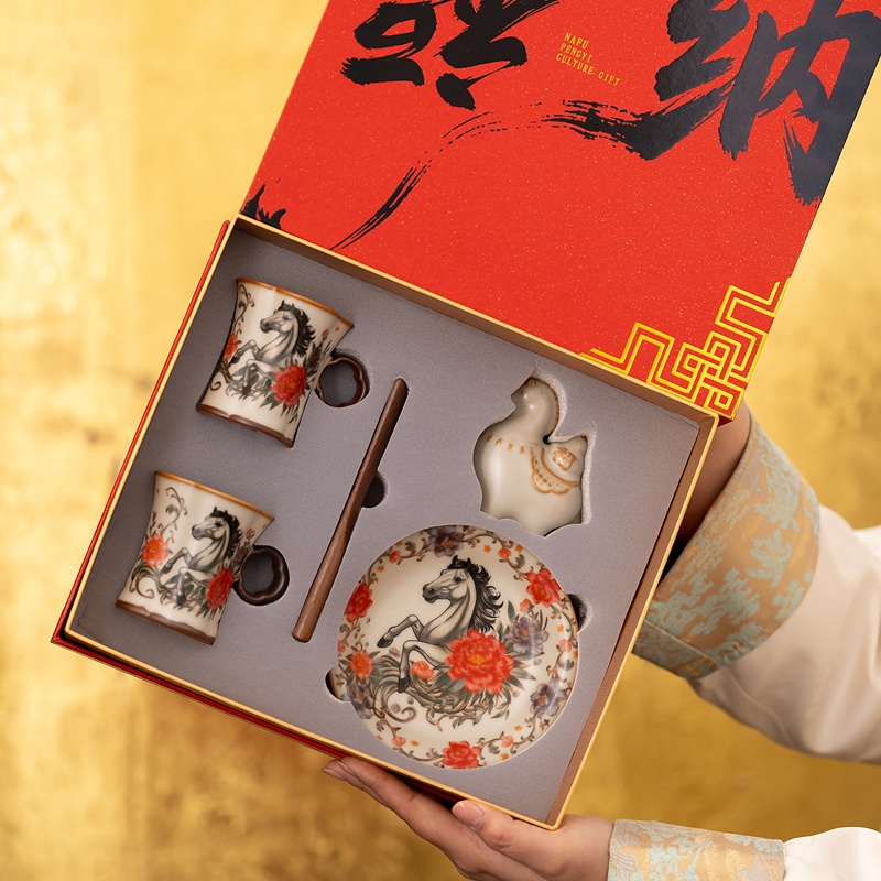 马上花开双杯盘摆件套装