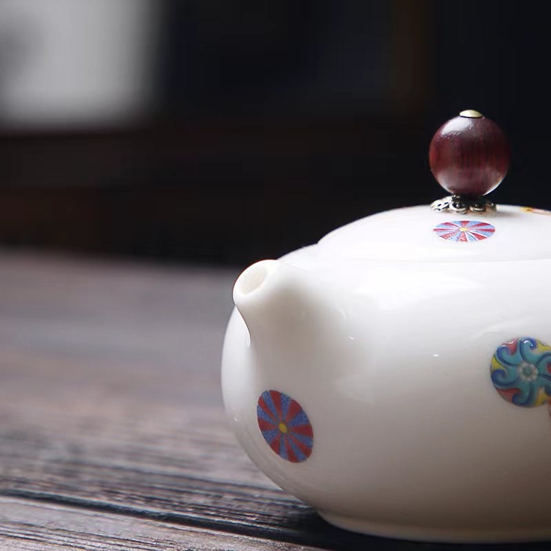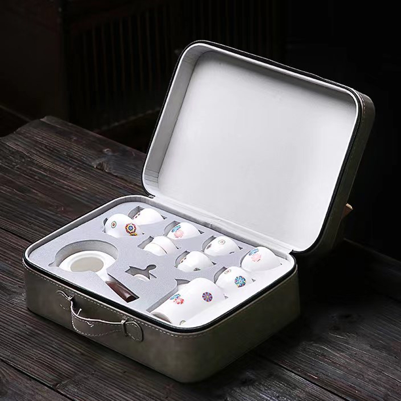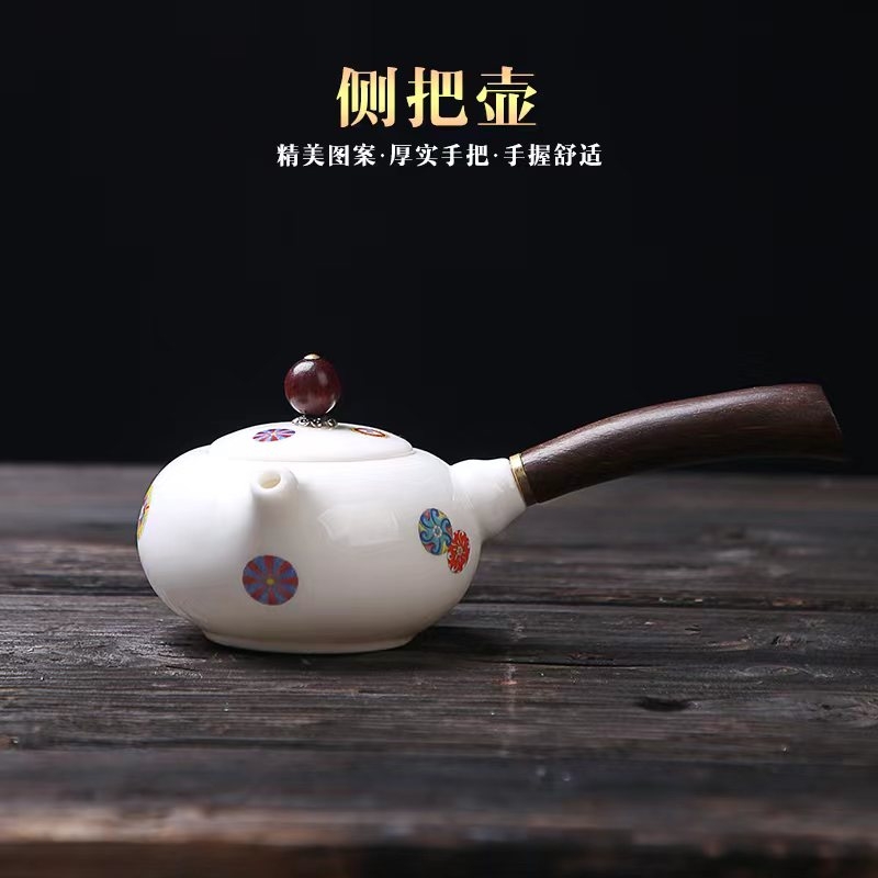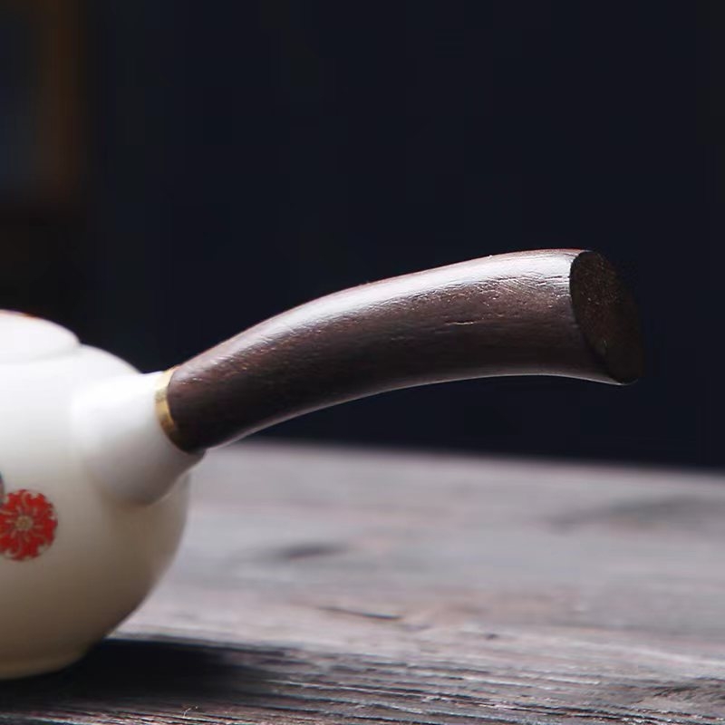 雪绒花羊脂玉瓷木柄壶皮包套装