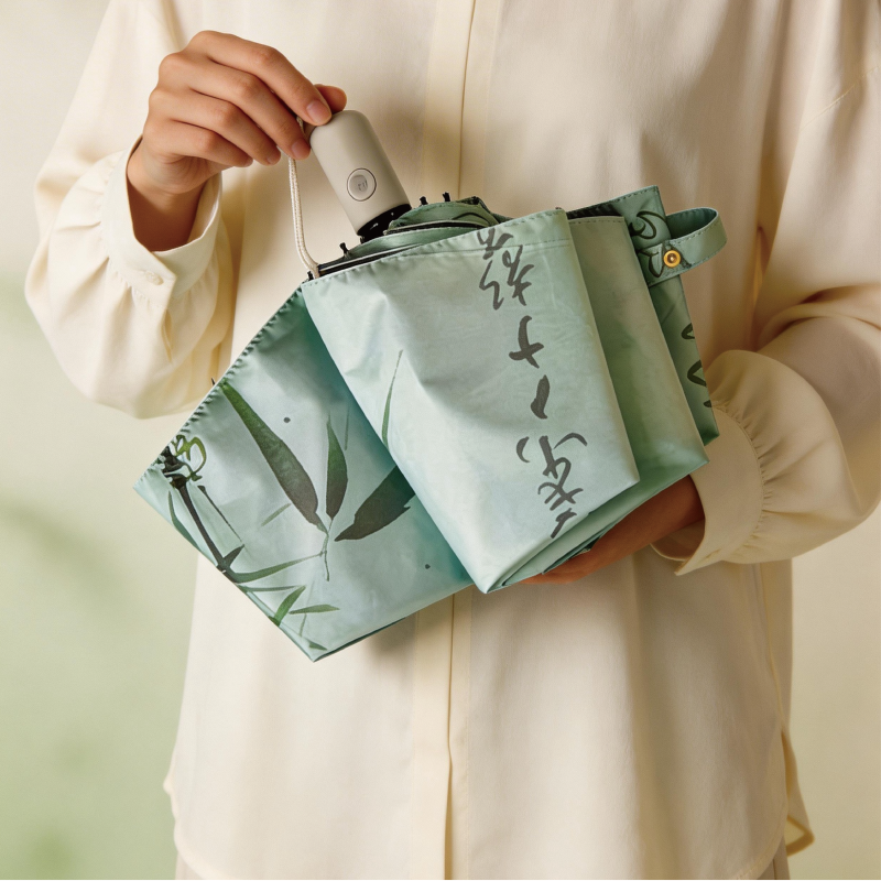 竹韵自动雨伞:三折自动 材质: 黑胶 尺寸:28公分