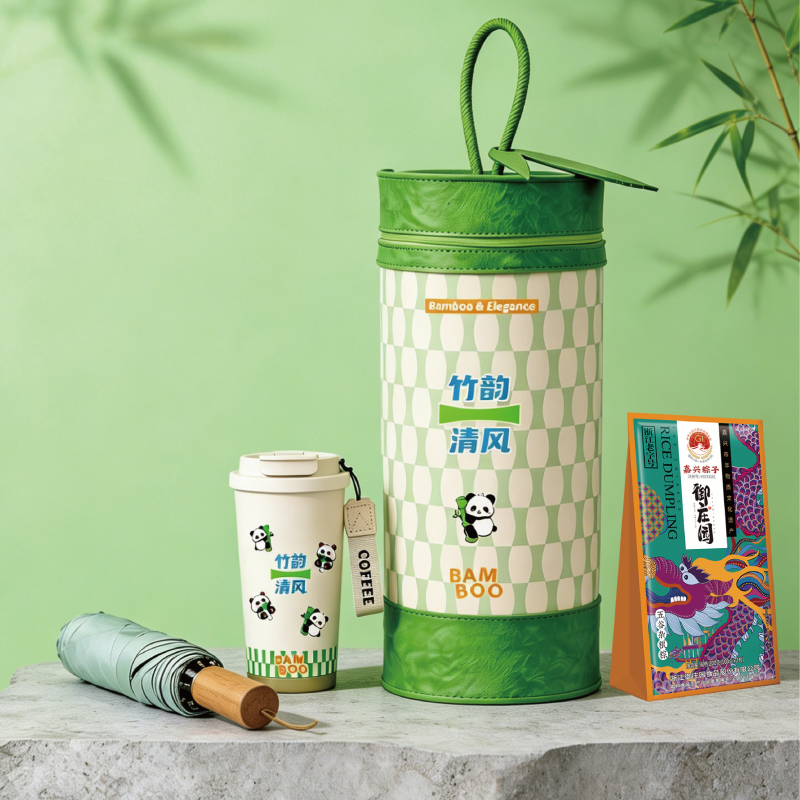 礼盒配置:手提毛毡竹节桶*1、竹韵自动雨伞*1 竹韵咖啡杯*1 御庄园粽子*1
