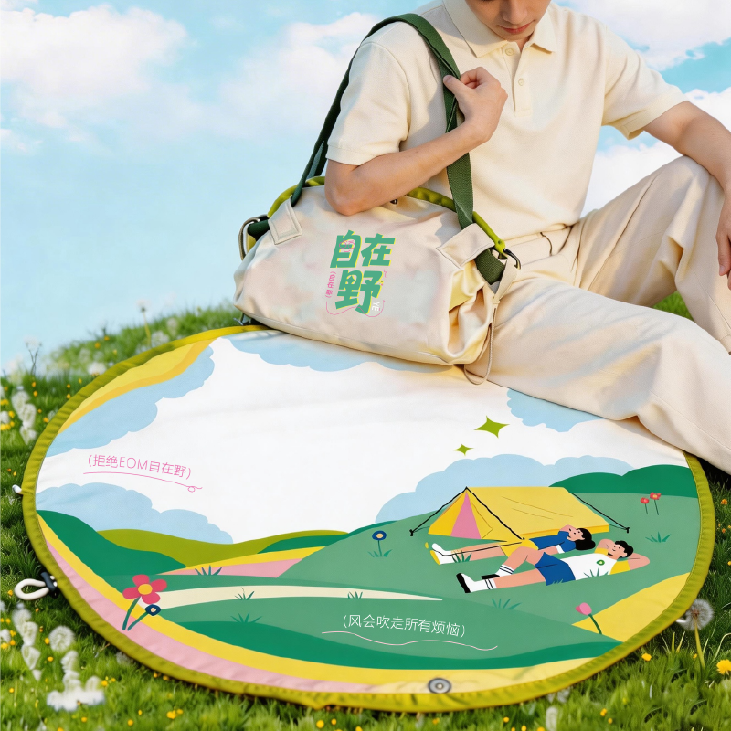 二合一户外折叠包:展开 野餐垫:材质:尼龙 尺寸:100cm直径
