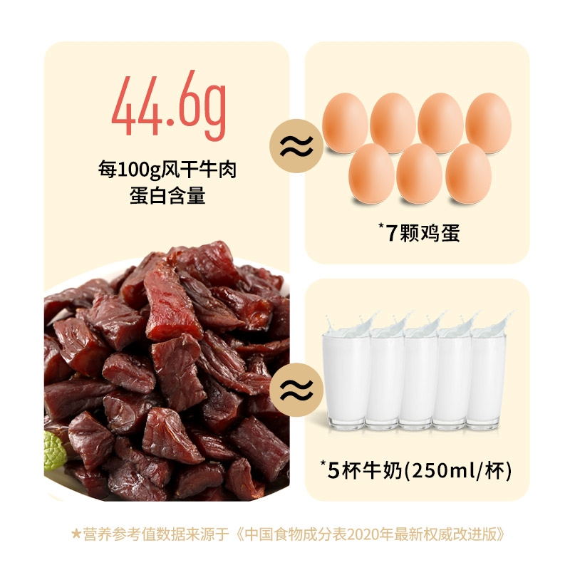 口味醇正,口感偏软;富含优质蛋白质;真空独立包装