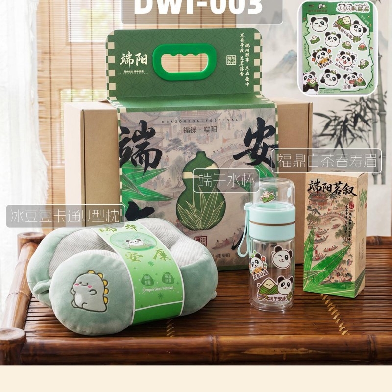 组合:冰豆豆卡通U形枕*1、端阳茗叙白茶8g*2袋、双层高硼硅玻璃杯350ml