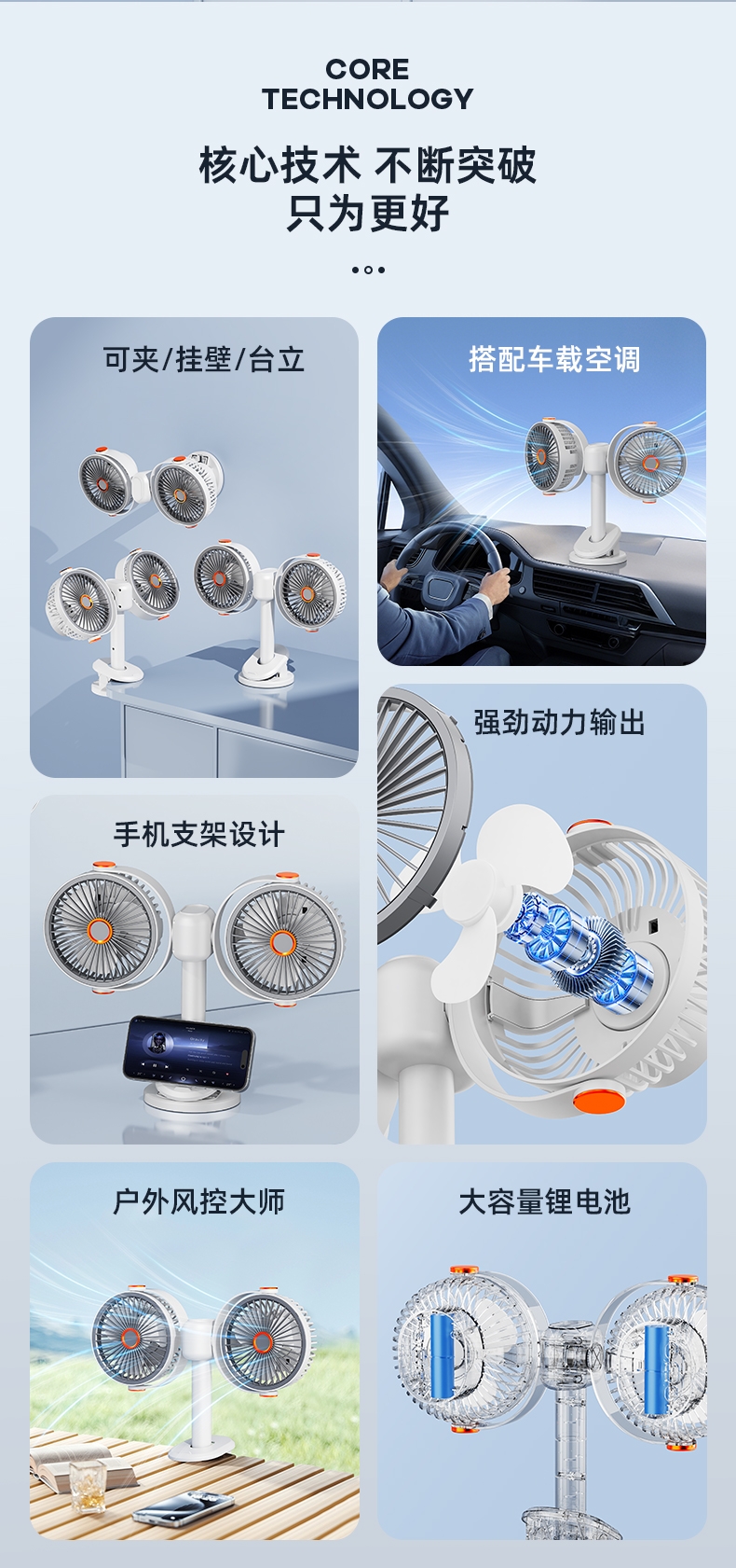 强劲大风力;双头多角度任意旋转;双键独立分控