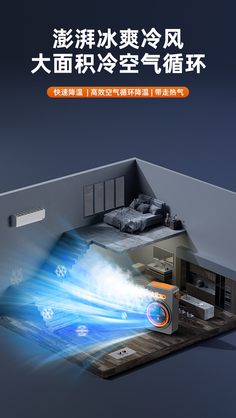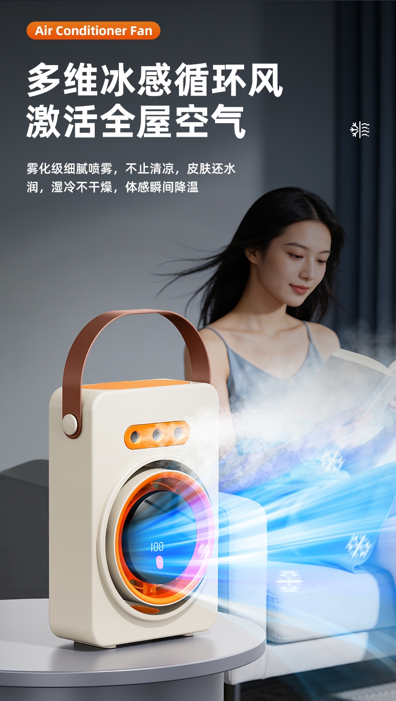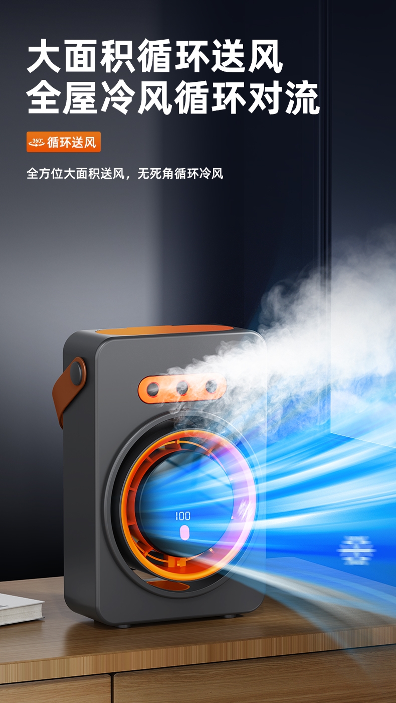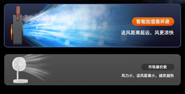 三喷口大雾量,水雾细腻,;智能加湿循环扇, 送风距离超远,风更凉快;快速降温