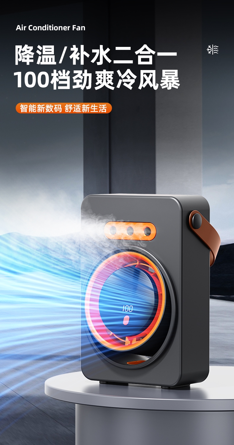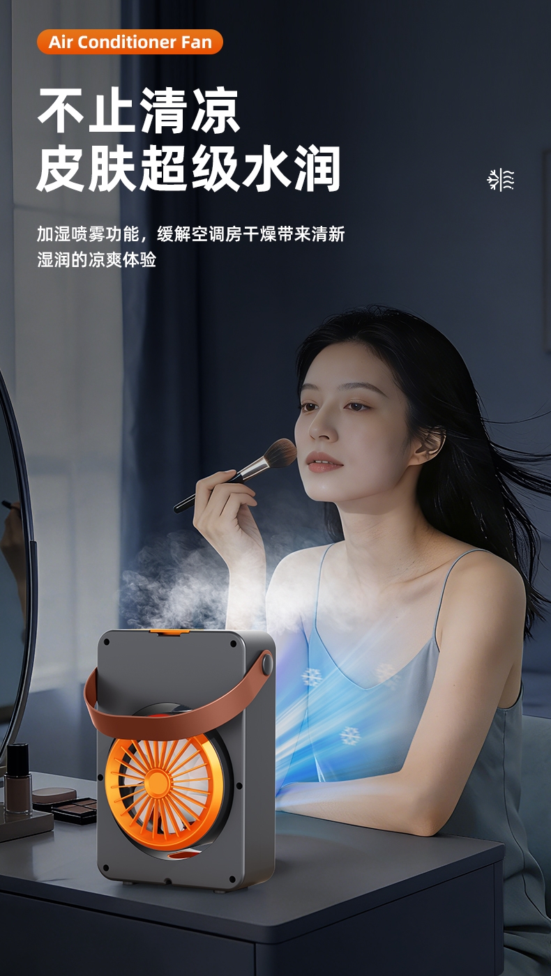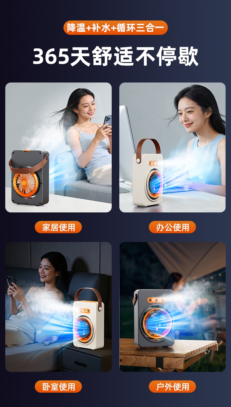 三喷口大雾量,水雾细腻,;智能加湿循环扇, 送风距离超远,风更凉快;快速降温
