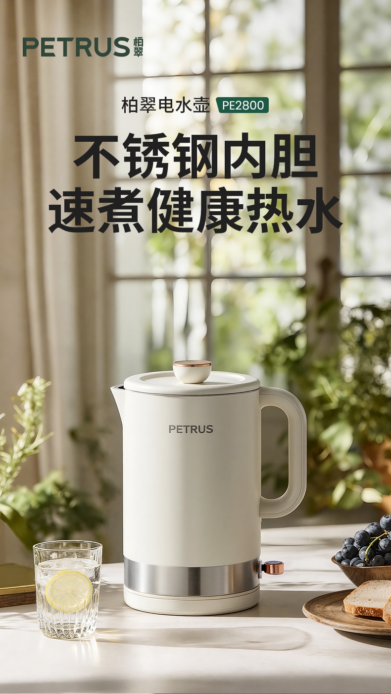 柏翠 家用全不锈钢接触双层电热水壶PE2800