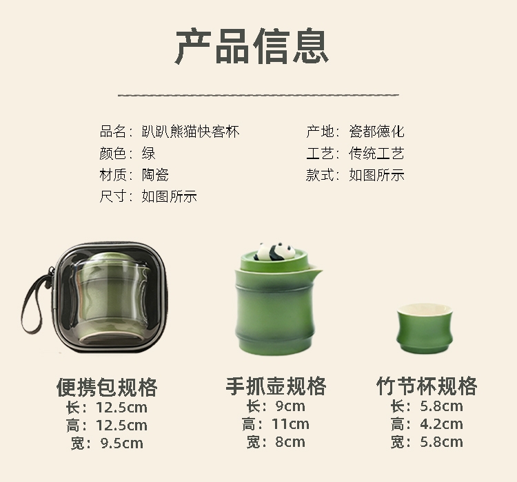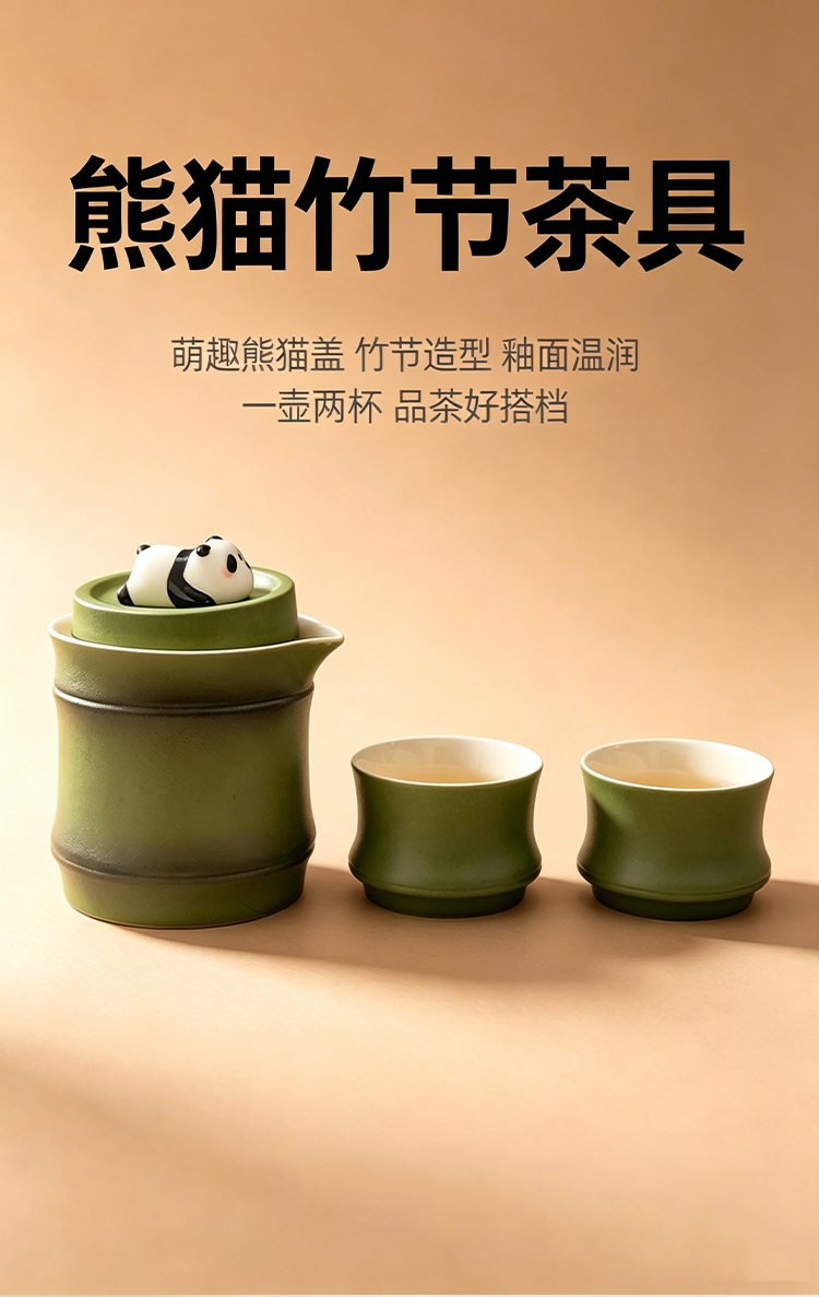 配置清单:便携包*1、趴趴熊猫手抓壶*1、竹节杯*2